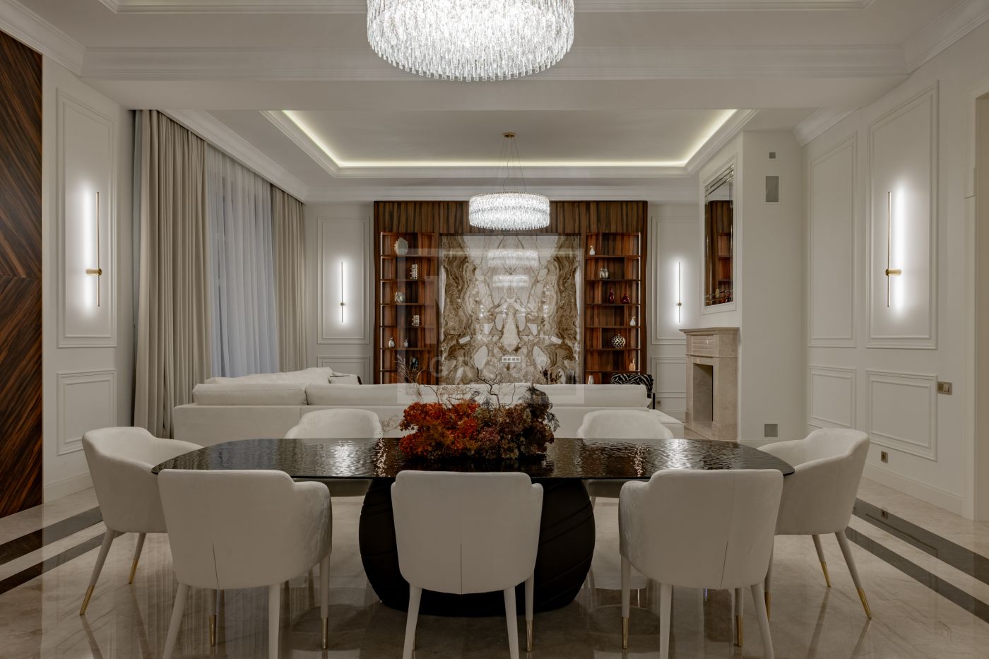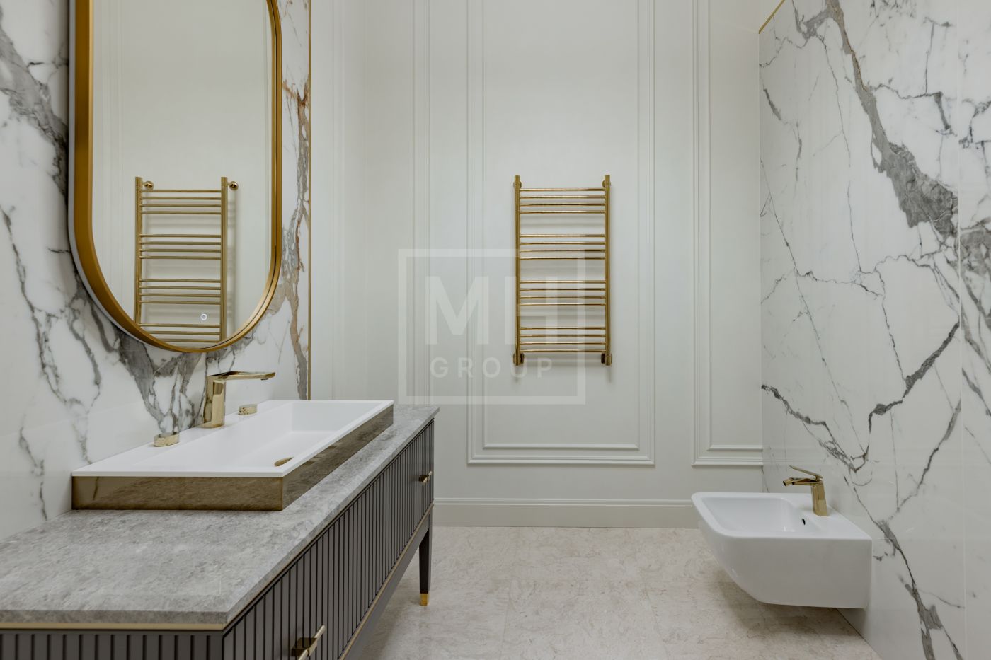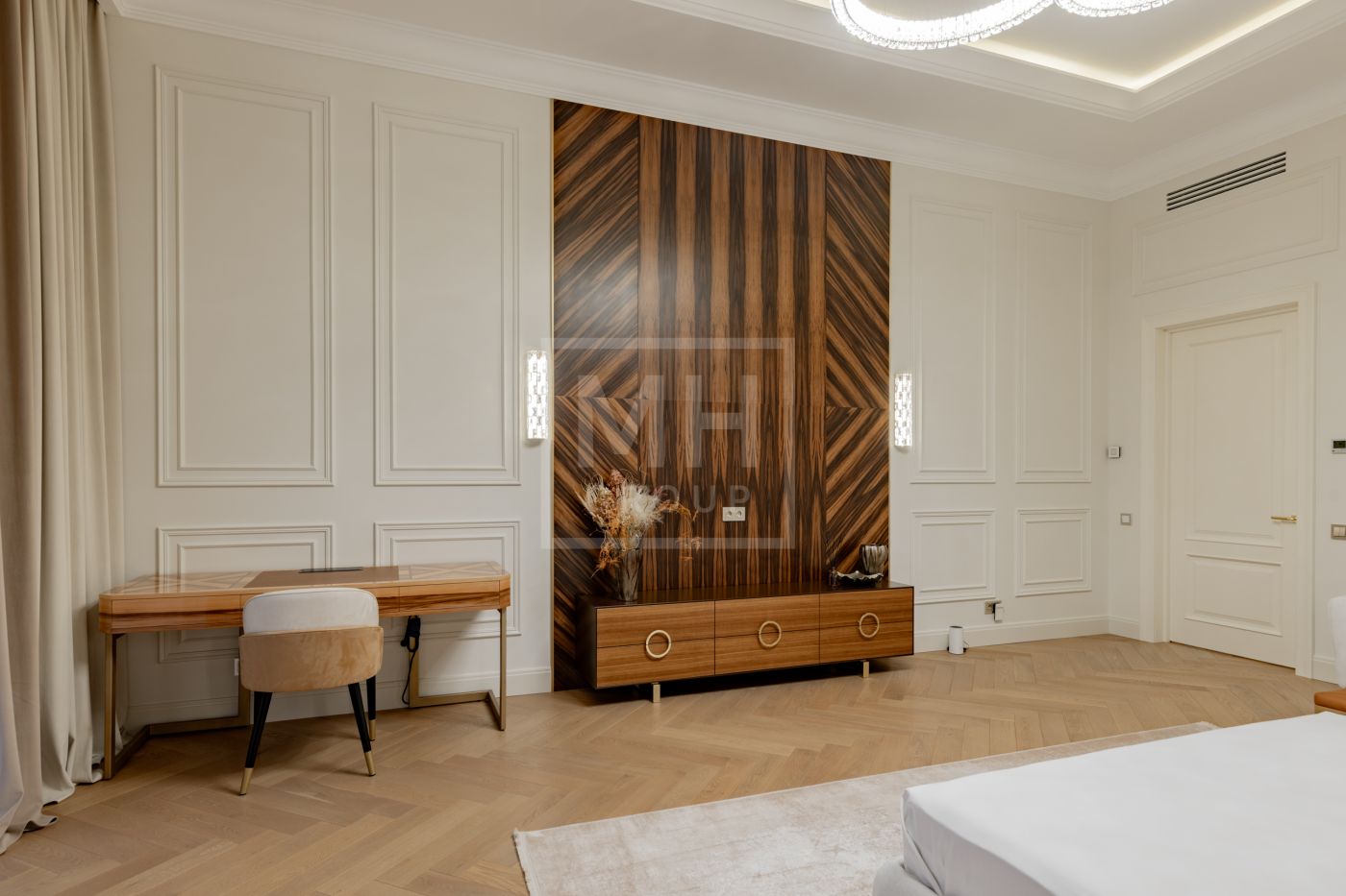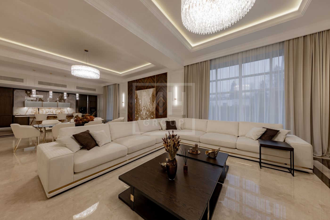 Дом представляет собой великолепный пример современной архитектуры с кирпичными стенами и монолитными перекрытиями. Фасады выполнены из натурального камня, а деревянные панорамные окна из лиственницы добавляют интерьеру естественного света и уюта.В отделке использованы высококачественные материалы, в частности, итальянский керамогранит, натуральный мрамор, а также представлена премиальная сантехника из Италии и Германии. Функционально удобная планировка, просторные помещения и панорамное остекление расширяют пространство и предусматривают комфортное проживание для большой семьи.