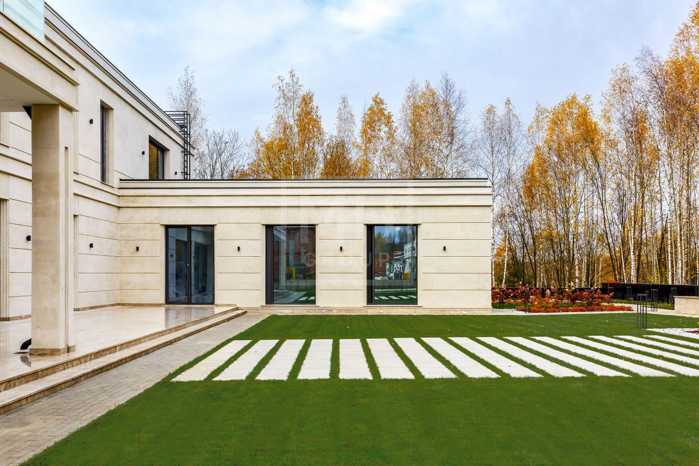 Резиденция под финишную отделку. Основное строение площадью 1500м2 и дом для персонала 85м2. Фасад облицован светлым селекционным натуральным известняком, терраса и крыльцо -доломитом. Окна от немецкого бренда Schuco. Высота потолков на 1 этаже 3,8м, на 2 этаже 3,6м. Камфорные планировочные решения: 5 спален ( можно сделать 6), есть дополнительная рабочая кухня, просторная СПА зона с бассейном. Все инженерные коммуникации проведены и подключены, террасы и крыльцо с подогревом, котельная Wolf, центральное кондиционирование, вентиляция, увлажнение, система Умный дом. Смонтированы инсталляции в зонах ванных комнат от брендов Antonio Luppi, Fantini,Gessi.На участке полностью выполнены ландшафтные работы: автополив, освещение, мощение, газон, высажены крупномеры.
