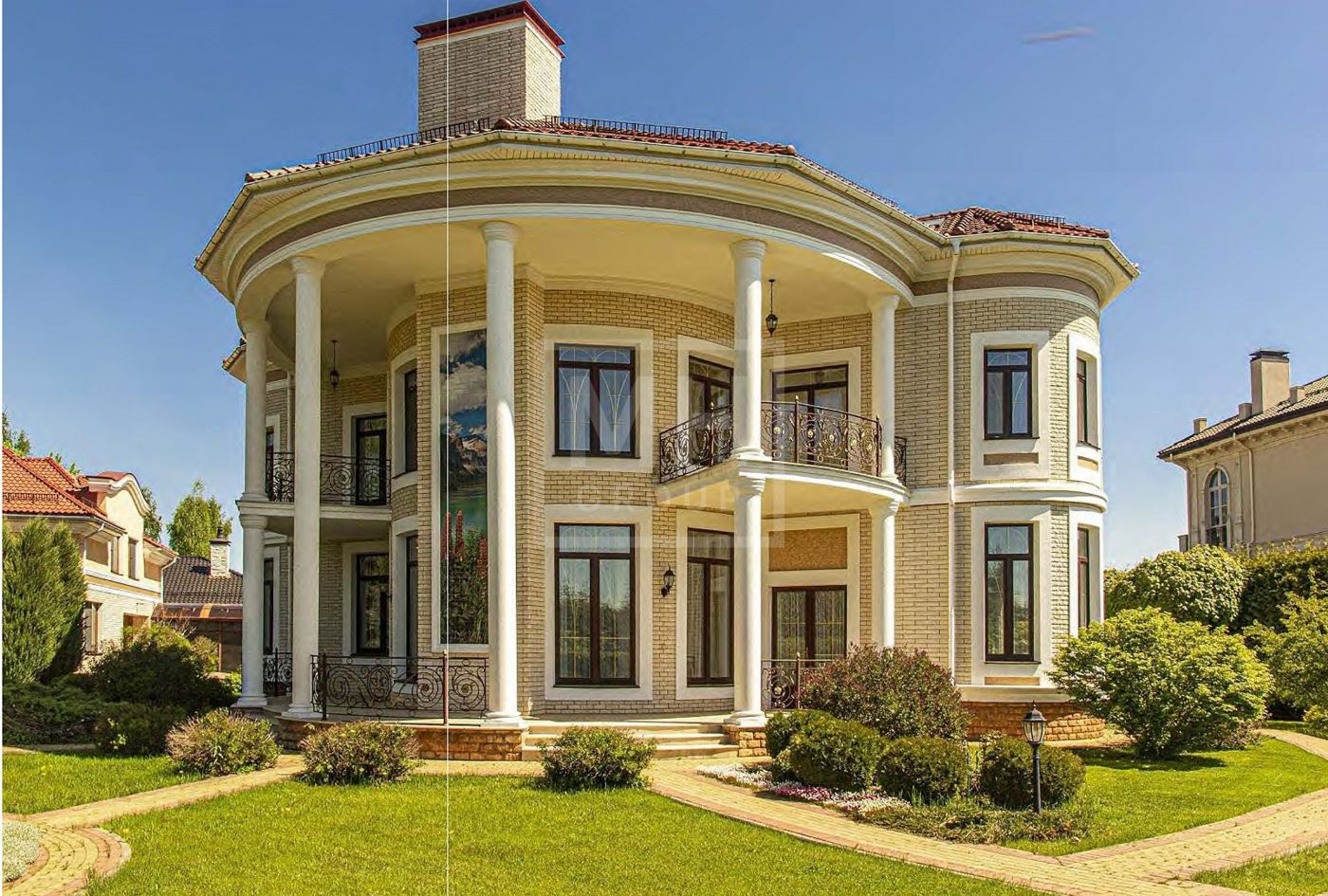 Дом построен в 2014 году в классическом стиле из полнотелого кирпича, толщина стен 60см, кровля из натуральной черепицы BRAAS (Германия). Деревянные окна с трехкамерным стеклопакетом.