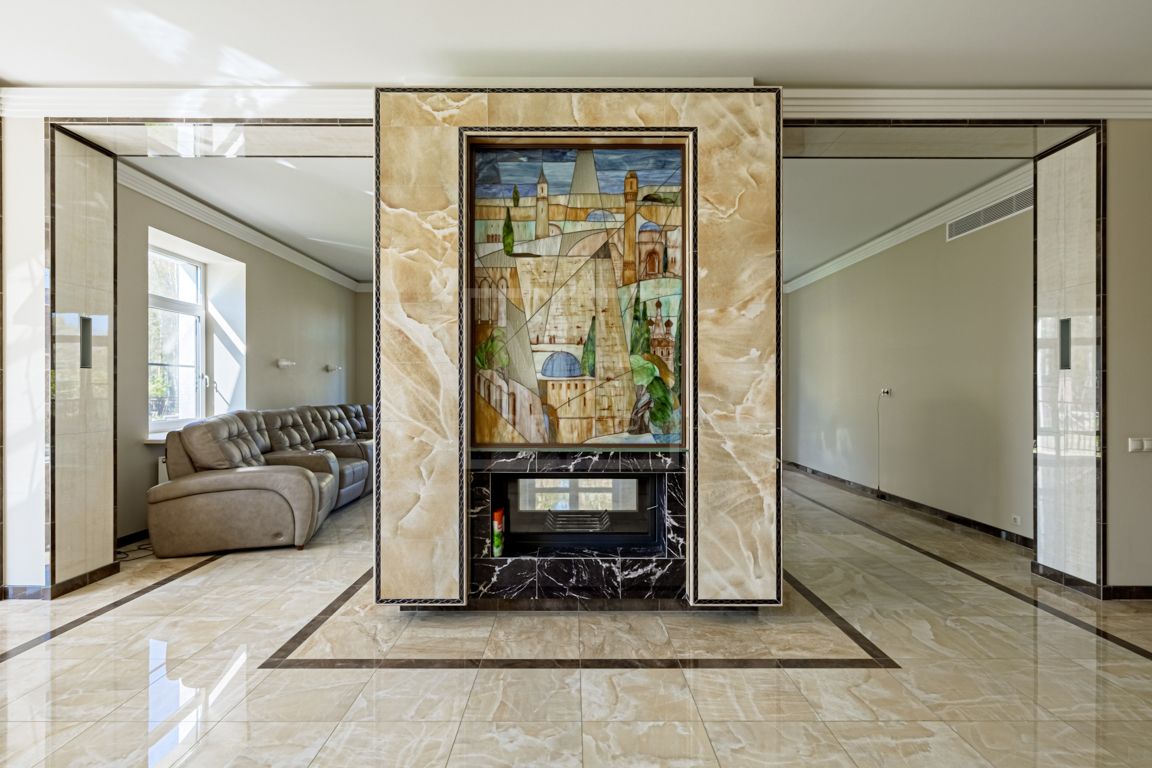 Этаж 1: холл, кухня-столовая со встроенной бытовой техникой, гостиная с уникальным авторским камином с подсветкой, кабинет, гостевой с/у, терраса, гараж на 2 м/м.