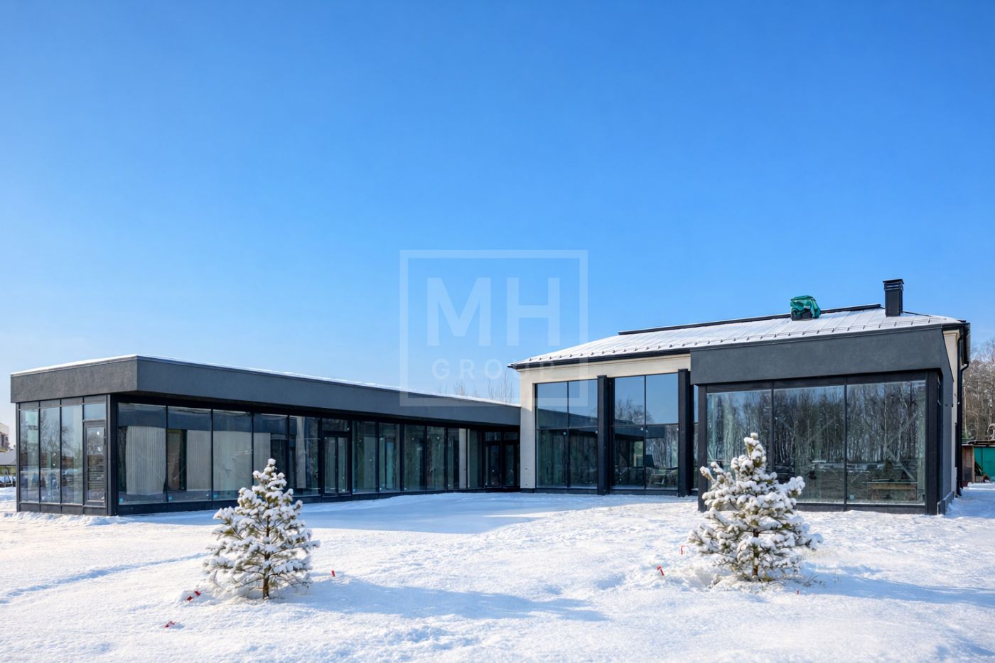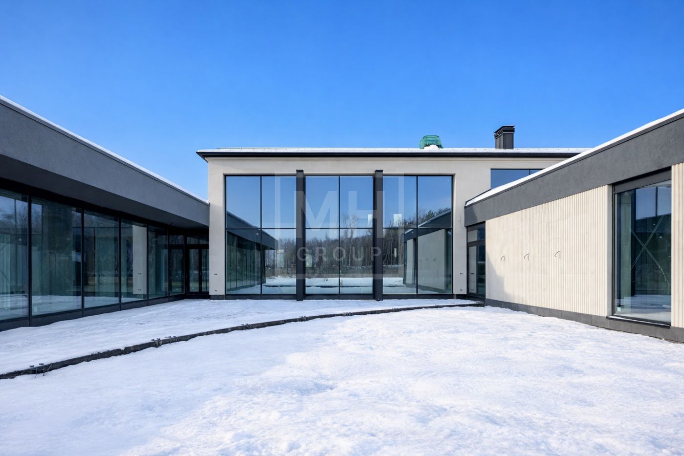 Двухэтажный загородный дом в современном архитектурном стиле и предчистовой отделкой в КП "Шато Соверен".Идеальная локация в поселке - рядом с оборудованными зонами отдыха.