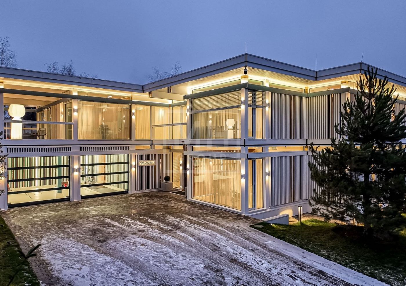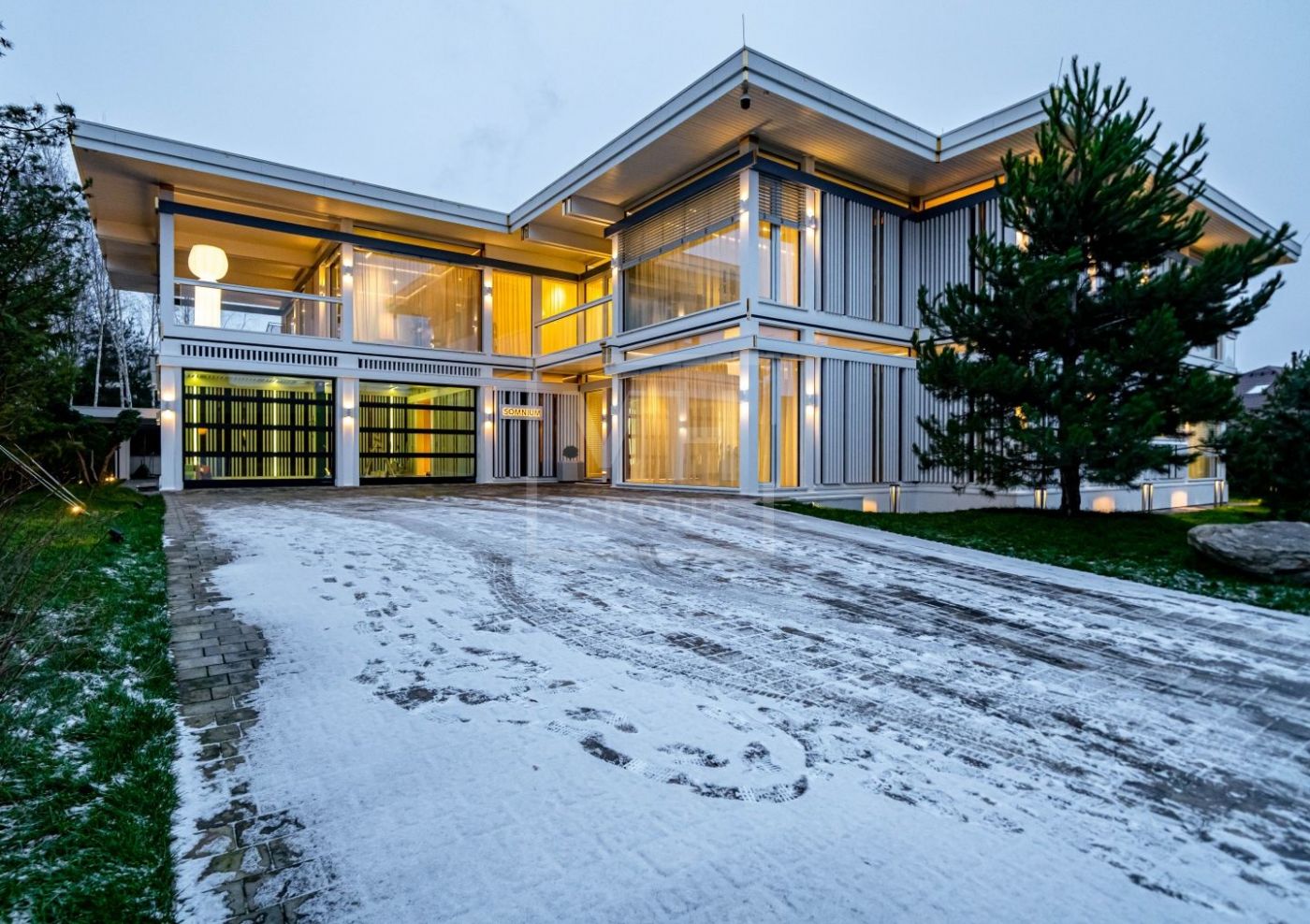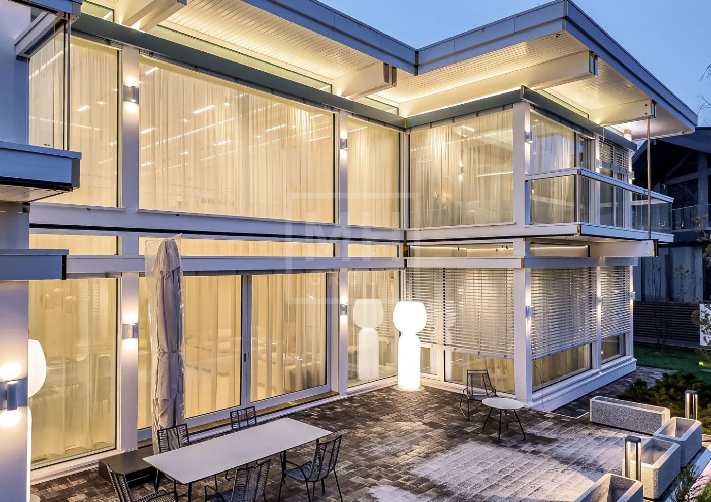 Дом общей площадью 836 кв.м. с 5 спальнями расположен на видовом участке 13 соток в коттеджном посёлке Малое Сареево.Дом построен по фахверковой технологии с использованием конструкционного клеёного бруса, что обеспечивает прочность, геометрию и долговечность конструкции. Безрамное панорамное остекление