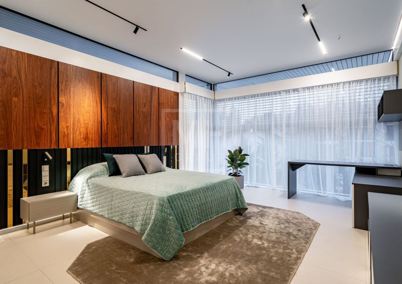 Этаж 2: холл с балконом; мастер-спальня с санузлом, гардеробной, кабинетом и балконом; спальня с санузлом, гардеробной и балконом; спальня с санузлом, гардеробной и балконом; спальня с санузлом и гардеробной.