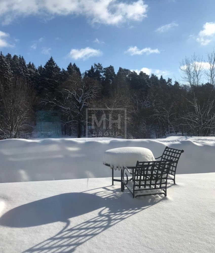 Спланированы 6 спален, гостиная, кухня, столовая, кабинет, винный погреб с дегустационной комнатой, кинозал с репетиционной зоной, игровая, библиотека, зимний сад, 3 балкона и терраса на эксплуатируемой кровле. Дополнительно предусмотрена квартира для персонала с 2-мя спальнями, кухней и санузлом. На территории проложены дорожки и установлено уличное освещение. Ландшафт сочетает газоны, кустарники и многолетние деревья.