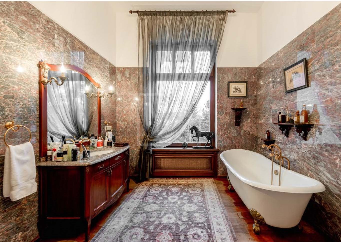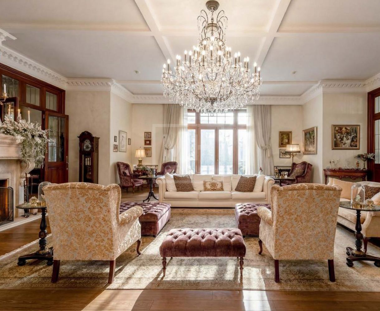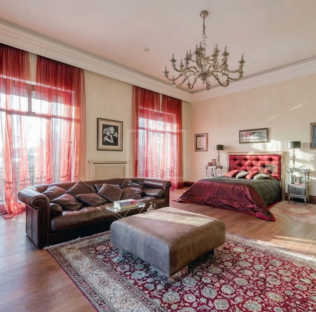 Цоколь: квартира для персонала (2 спальни, кухня, ванная комната), киногостиная с танцевальной зоной и репетиционной базой, с/у, винный погреб с дегустационной комнатой, сезонная гардеробная, кладовые и технические помещения, лифт