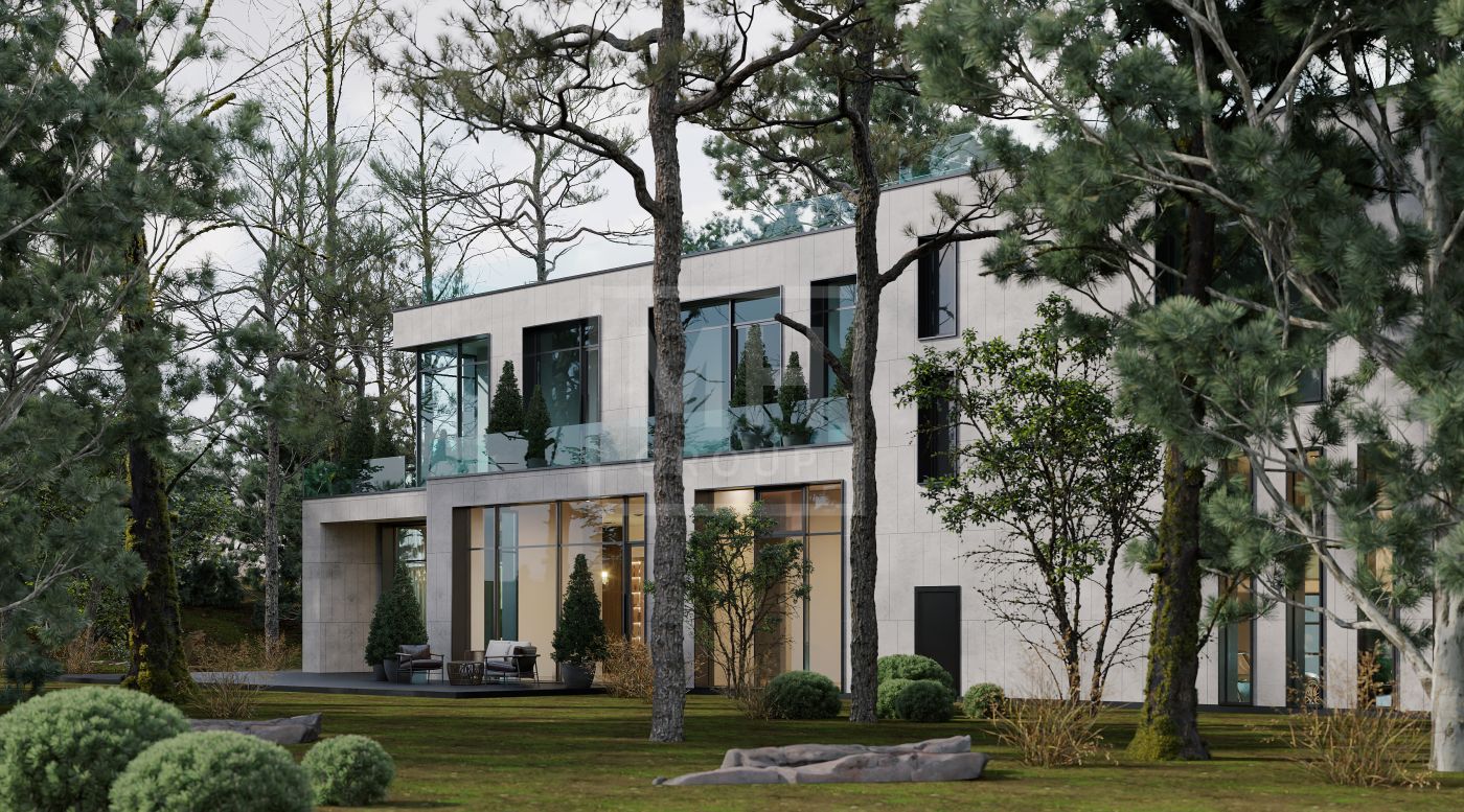 Этаж 1: Большой тамбур, прихожая, гардеробная, гостевой с\у, гараж на 3 автомобиля с возможностью сделать лифт для второго уровня, комната для водителя, кухня, вторая разделочная кухня, столовая, просторная гостиная с камином, СПА-зона: бассейн, сауна и хамам, выход на террасу, блок для персонала с отдельным входом.