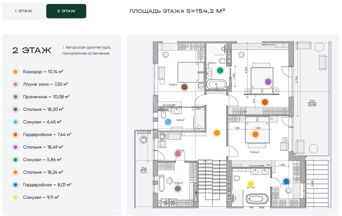 Этаж 2: Мастер-спальня с с/у и гардеробной и выходом на балкон, 2 спальни с с/у, постирочная