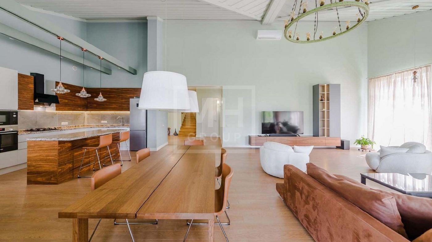 В доме современная удобная планировка.Установлены окна в пол, кондиционеры и теплые водяные полы.