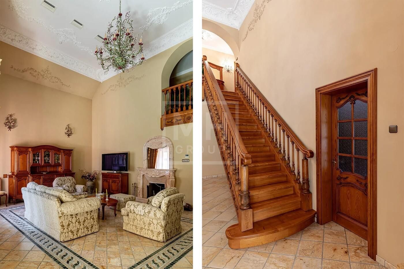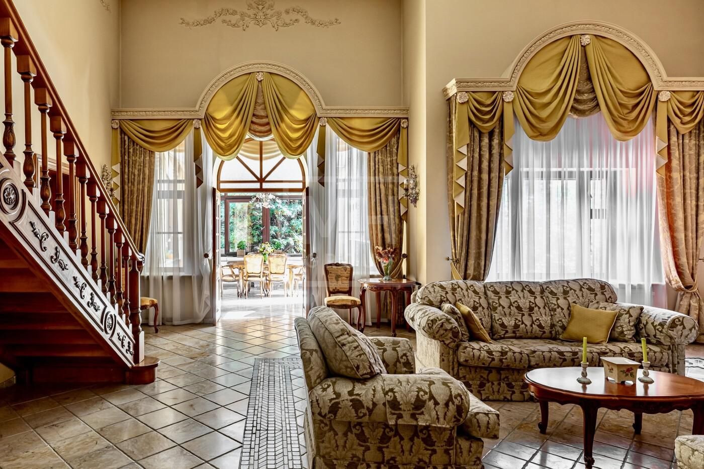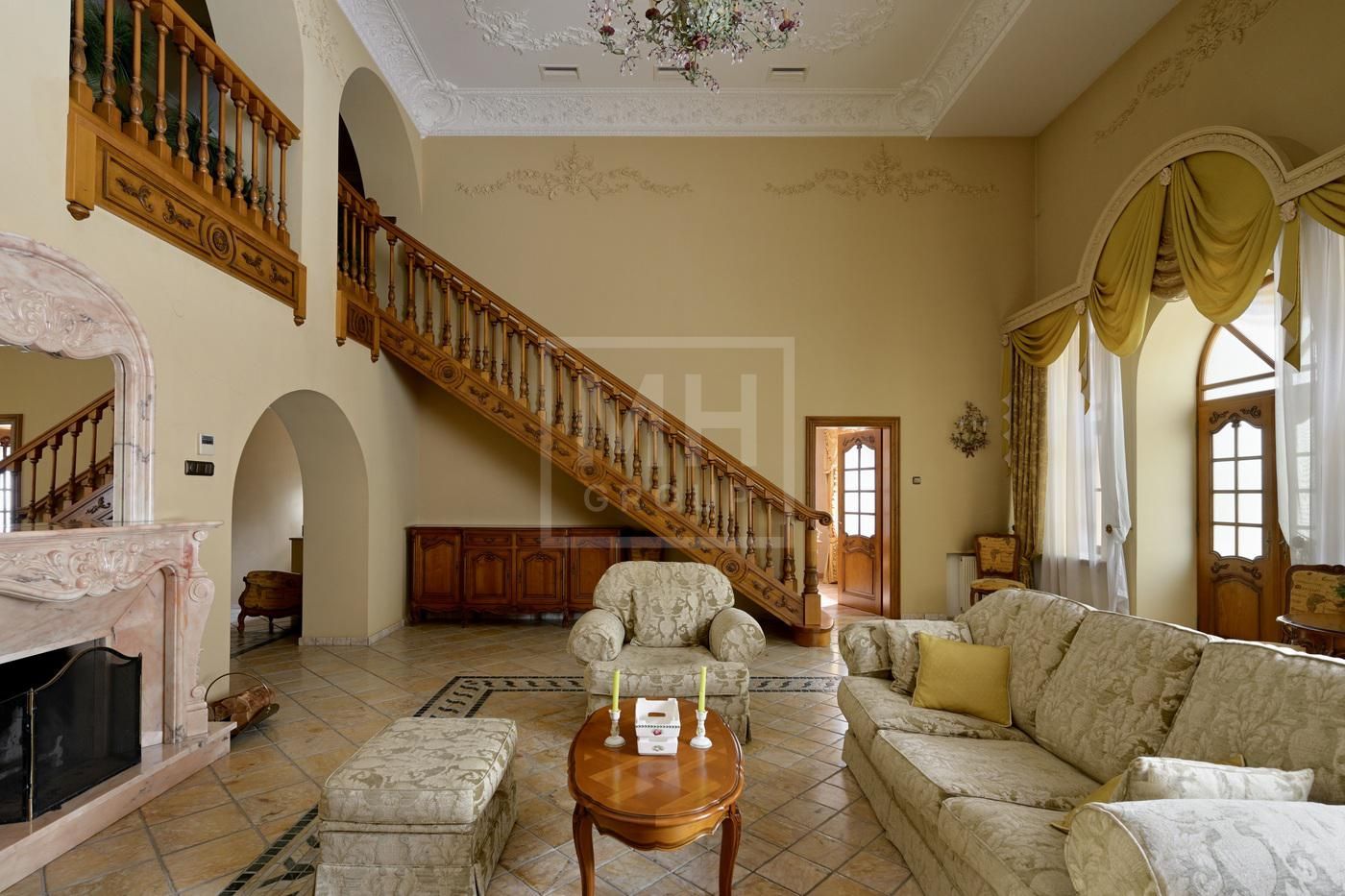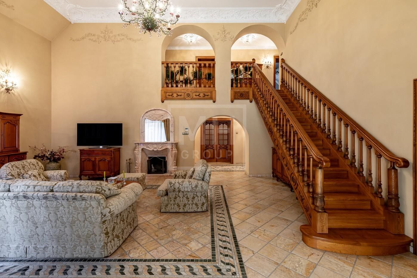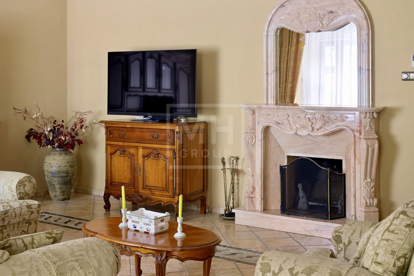 полы, подоконники, камин, санузел основной спальни, мрамор Giottoli Di Marmo заказ из Италии, мягкая мебель Великобритания. Имеются электрические рольставни на всех окнах.