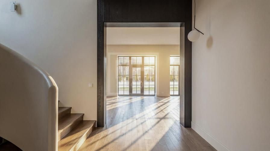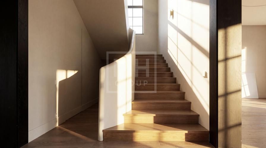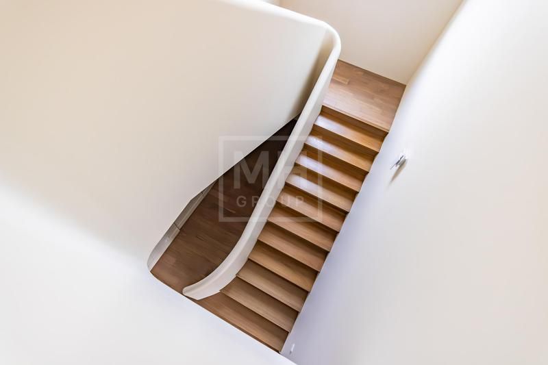 Внутри вас ждёт законченный интерьер в спокойных тонах с отделкой «под ключ» и полным оснащением. Полы по всему дому выполнены из инженерной доски Kraft Parker, стены покрыты фактурной краской Argile, а в санузле 1-го этажа