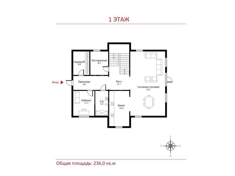 - Площадь дома236 м²