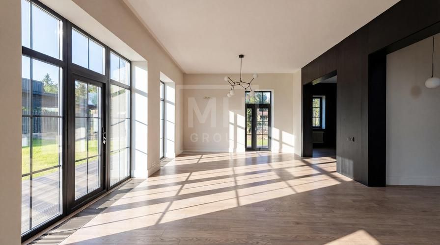 и превосходную энергоэффективность. Панорамное остекление наполняет пространство светом, а все центральные коммуникации (газ, вода, электричество, канализация) уже заведены в дом.