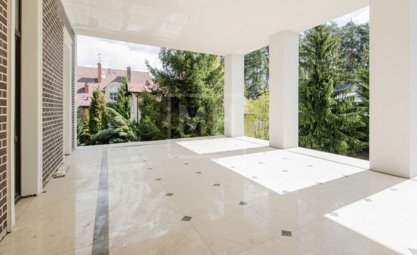Просторный загородный дом площадью 1300 м² построен на ровном полевом участке 15 соток без ландшафтного дизайна. Фасад в европейском стиле облицован коричневой клинкерной плиткой и натуральным камнем по цоколю, декорированбелыми наличниками и колоннами. В коттедже с отделкой whitebox спланировали несколько спален, гостиную, кухню, кабинет, кинотеатр, спортзал, парилку и гараж.