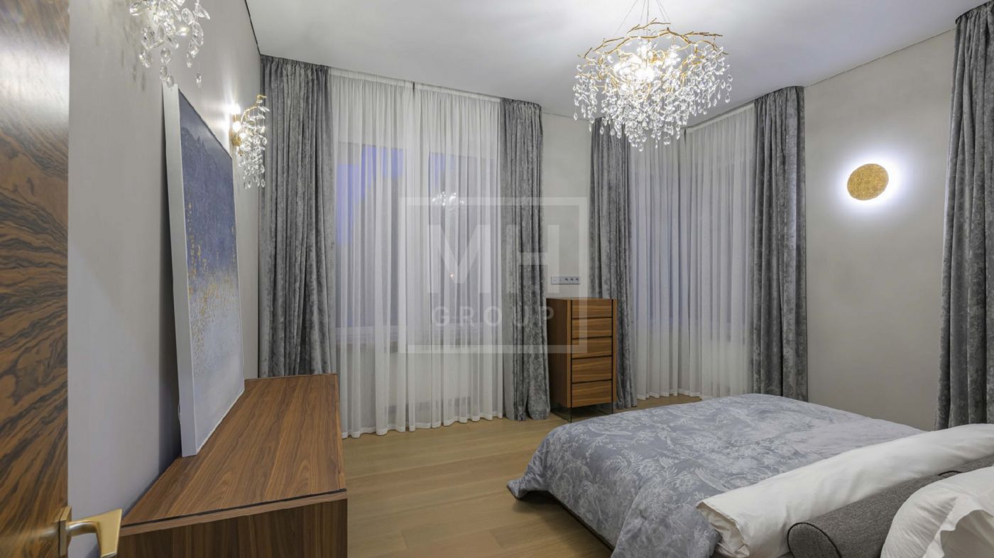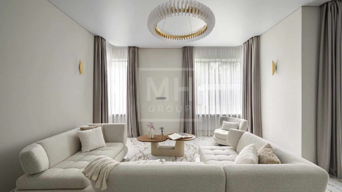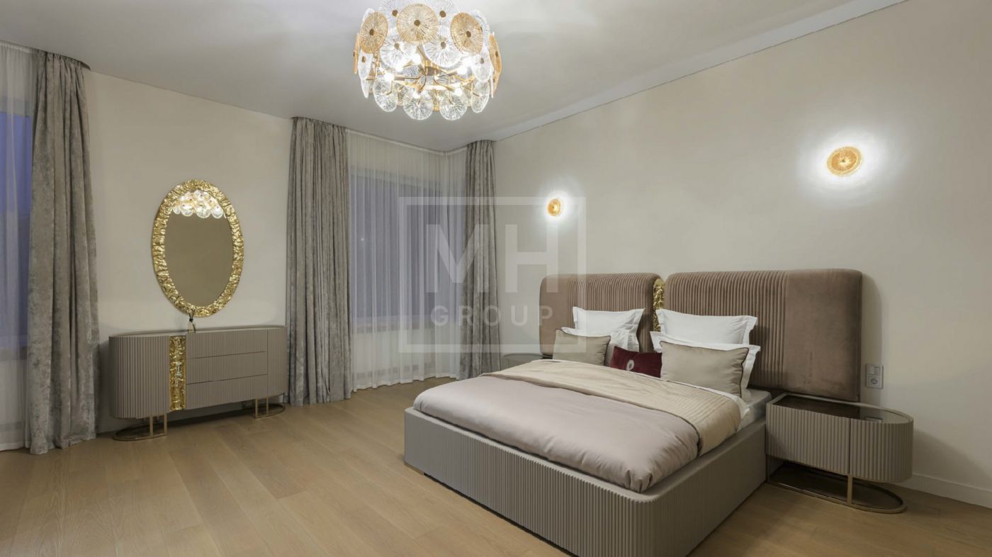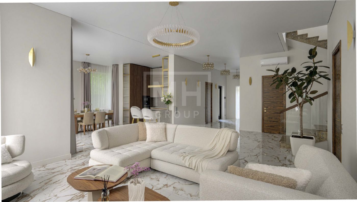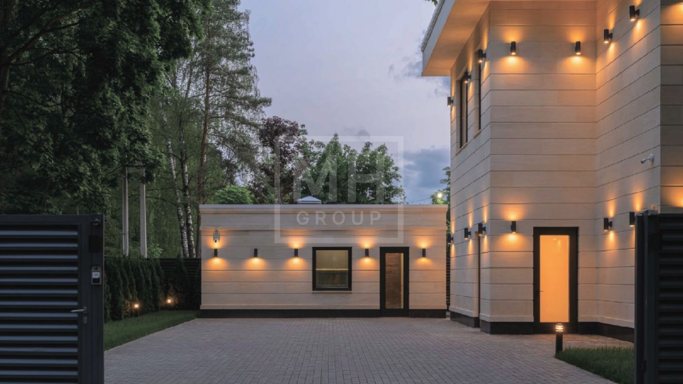 Дом полностью меблирован, отделка в доме выполнена с использованием высококачественных материалов - ценных пород дерева, шпона, натурального камня, мрамора, текстиль премиального качества, уровневое освещение, встроенная мебель индивидуального изготовления. Установлена система вентиляции с климат-контролем в каждом помещении. На участке располагается уютная беседка с зоной отдыха, а также отдельно стоящий гостевой дом с двумя спальнями и кухней.