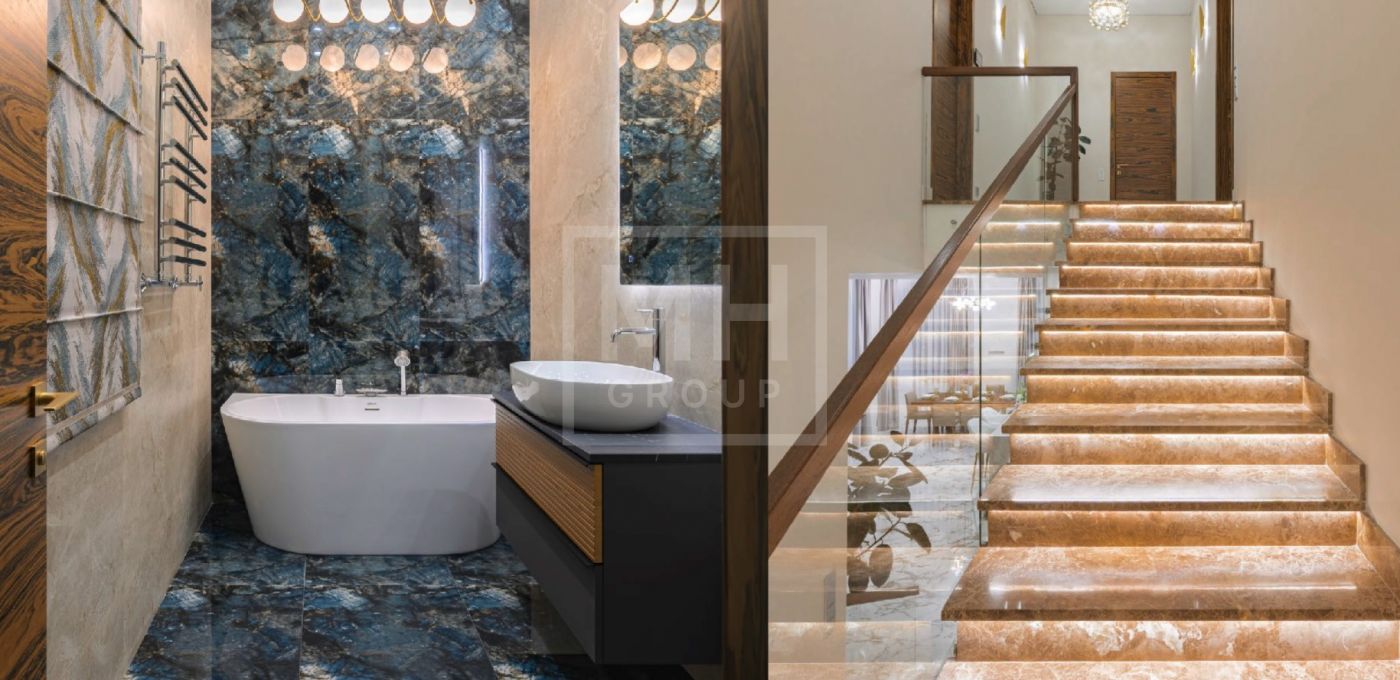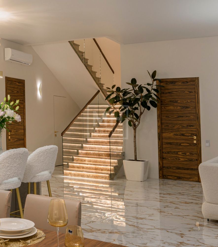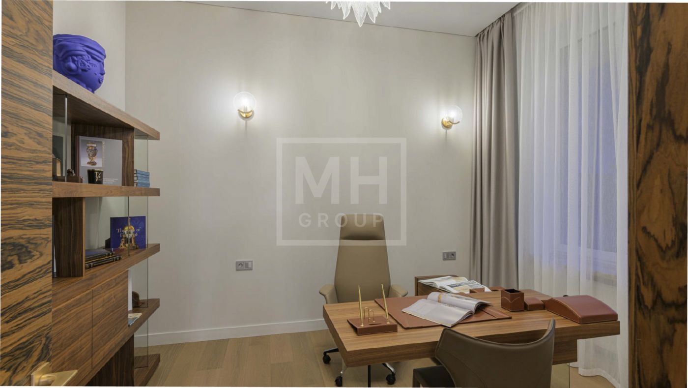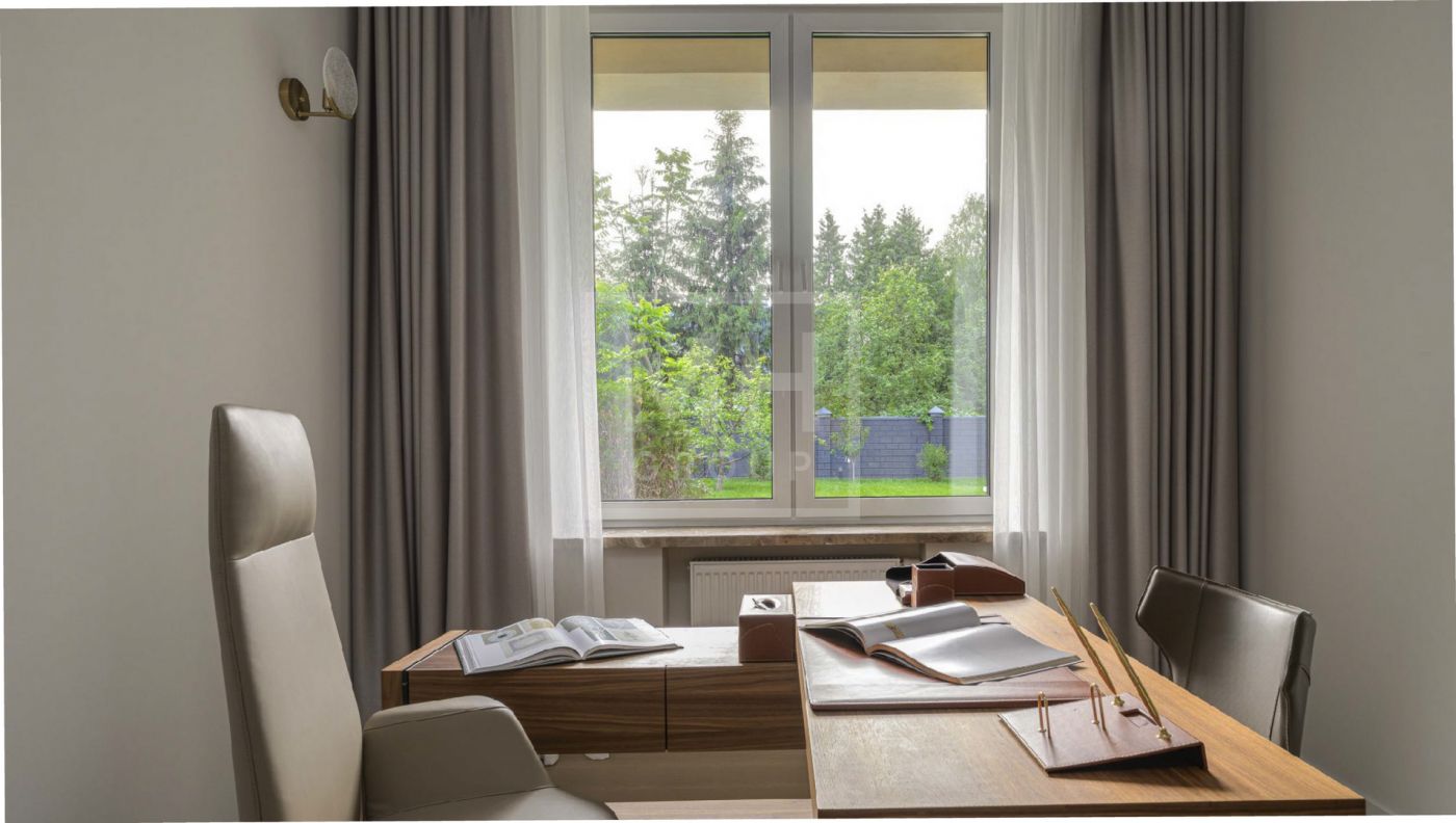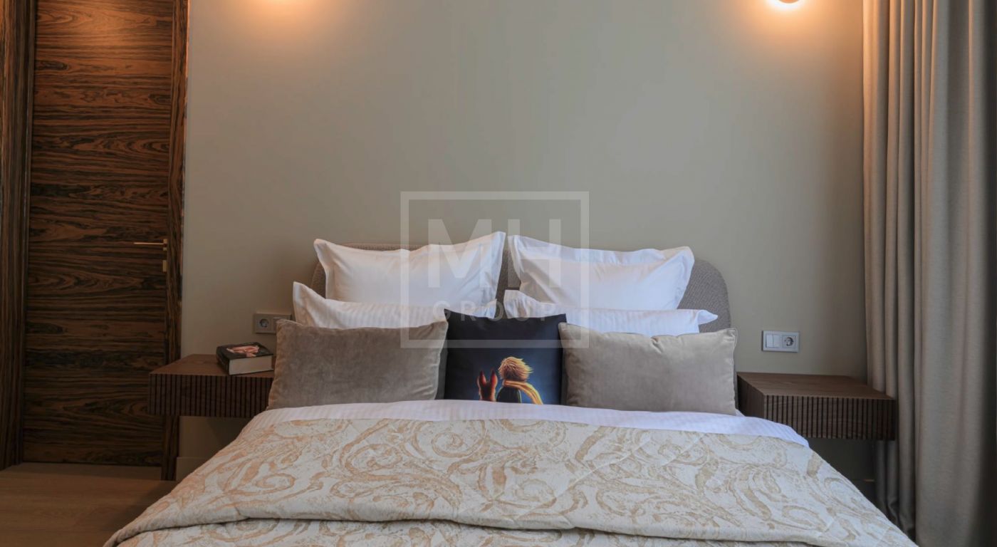 Дом полностью меблирован, отделка в доме выполнена с использованием высококачественных материалов - ценных пород дерева, шпона, натурального камня, мрамора, текстиль премиального качества, уровневое освещение, встроенная мебель индивидуального изготовления. Установлена система вентиляции с климат-контролем в каждом помещении. На участке располагается уютная беседка с зоной отдыха, а также отдельно стоящий гостевой дом с двумя спальнями и кухней.