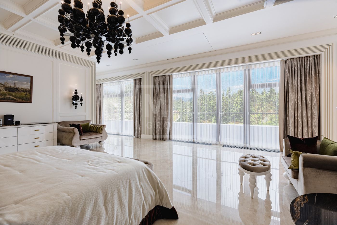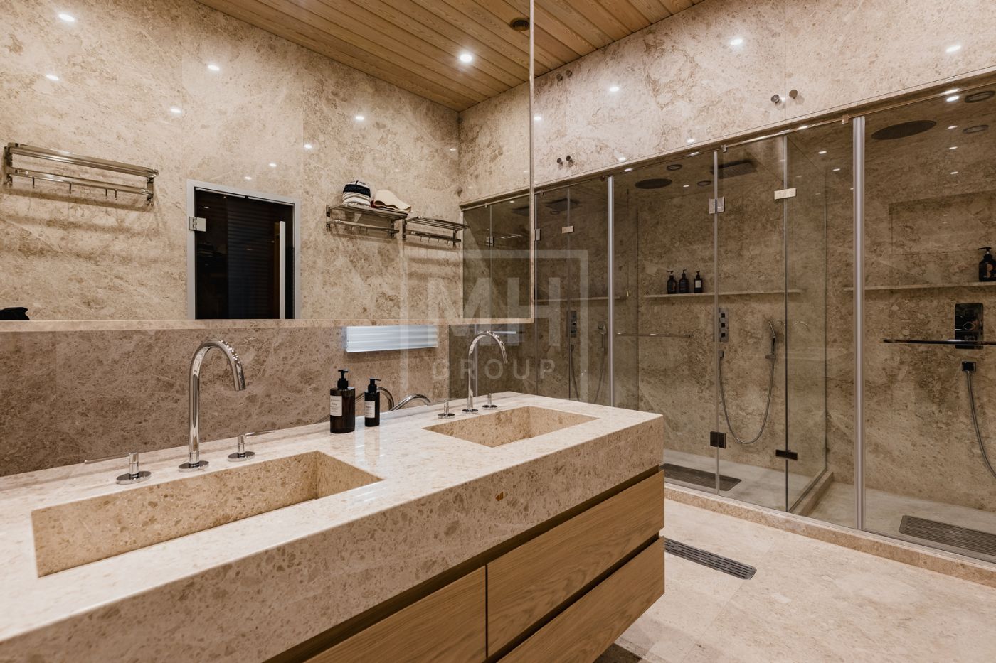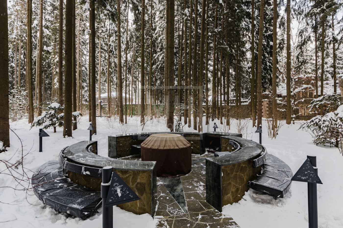Загородная роскошная резиденция из нескольких строений: 3 000м2 основной дом, 250м2 гостевой дом с банным комплексом, 200 м2 дом для персонала, располагается на лесном участке площадью 1,2 га.Во внутренней отделке использованы: дерево ценных пород, натуральный камень- мрамор и оникс. Все наполнение мебелью, техникой, светом и текстилем от лучших мировых производителей: Fendi, Saint Rabila, V-Zug, Miele, Sub-Zero, Angelo Po. В доме: лифт, спортивный зал с тренажерами, полноценный 25 метровый бассейн, боулинг на 2 дорожки, эксклюзивный дегустационный винный зал.