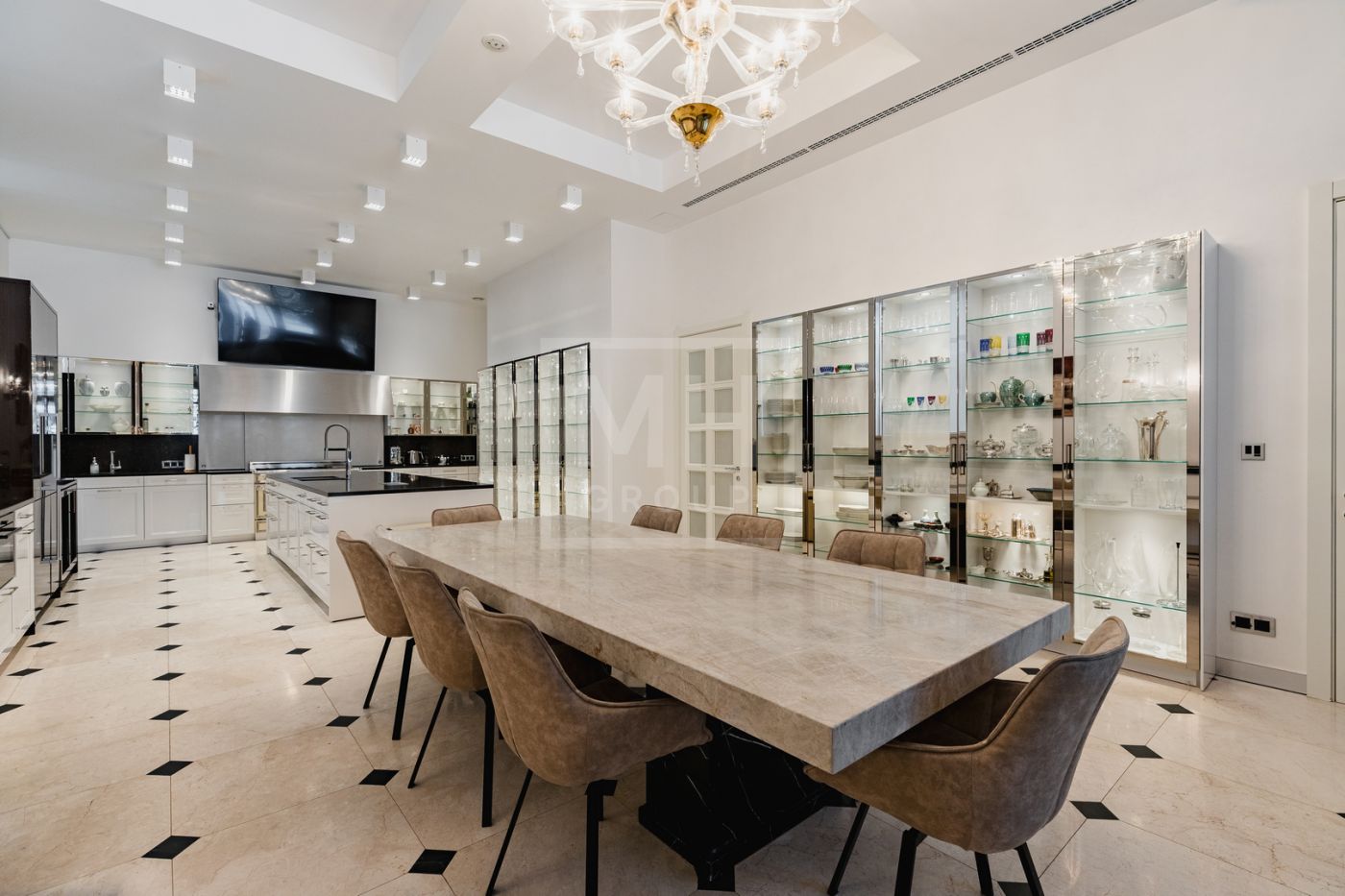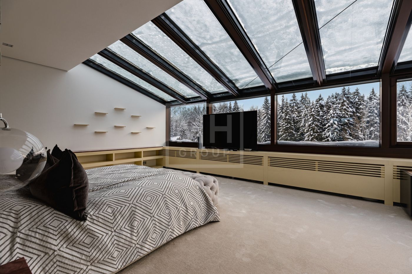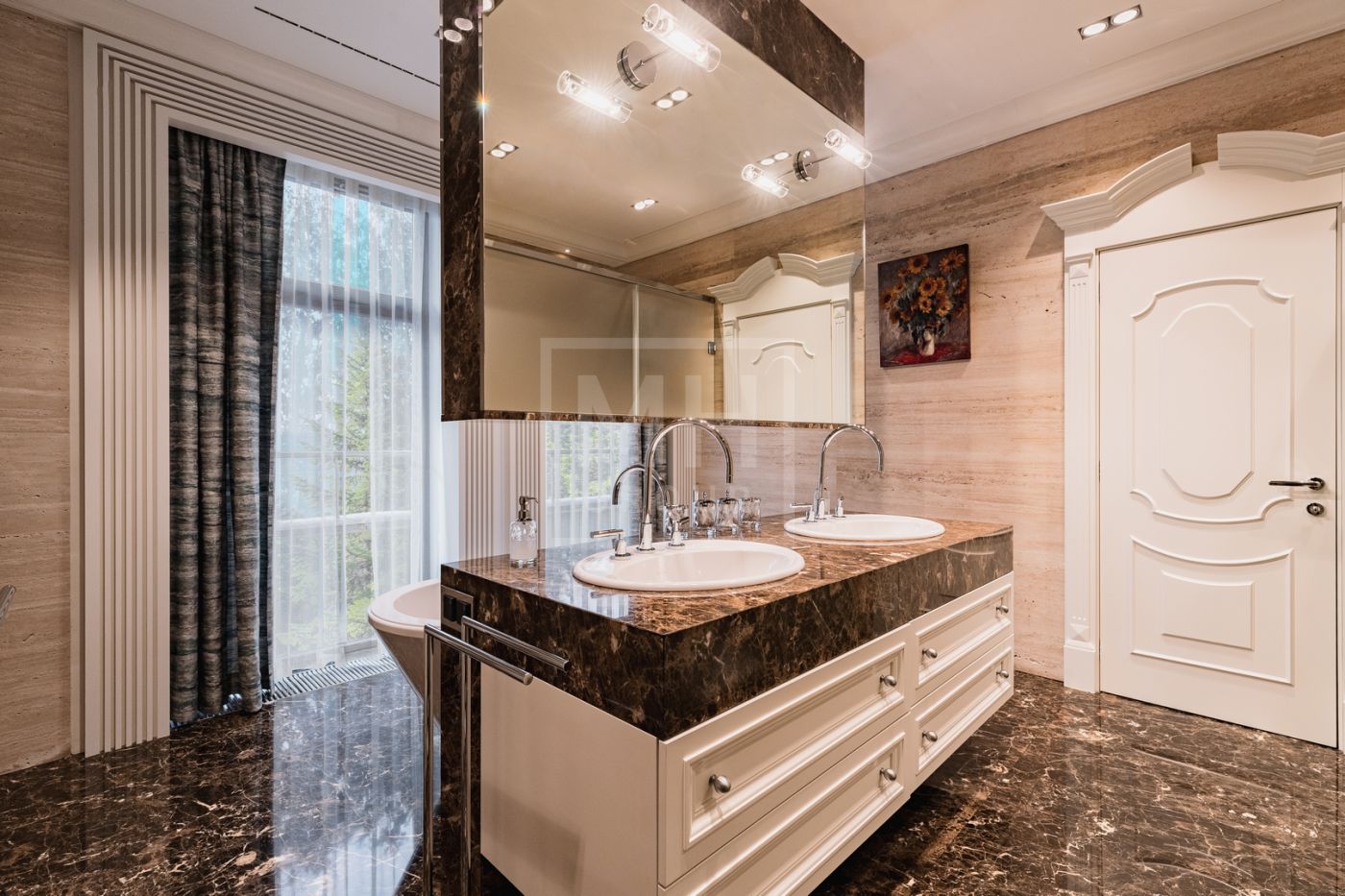 Загородная роскошная резиденция из нескольких строений: 3 000м2 основной дом, 250м2 гостевой дом с банным комплексом, 200 м2 дом для персонала, располагается на лесном участке площадью 1,2 га.Во внутренней отделке использованы: дерево ценных пород, натуральный камень- мрамор и оникс. Все наполнение мебелью, техникой, светом и текстилем от лучших мировых производителей: Fendi, Saint Rabila, V-Zug, Miele, Sub-Zero, Angelo Po. В доме: лифт, спортивный зал с тренажерами, полноценный 25 метровый бассейн, боулинг на 2 дорожки, эксклюзивный дегустационный винный зал.