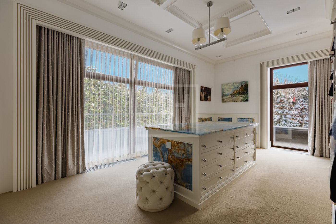 Этаж 3: гостиная, холл, 3 спальни с с/у и гардеробными