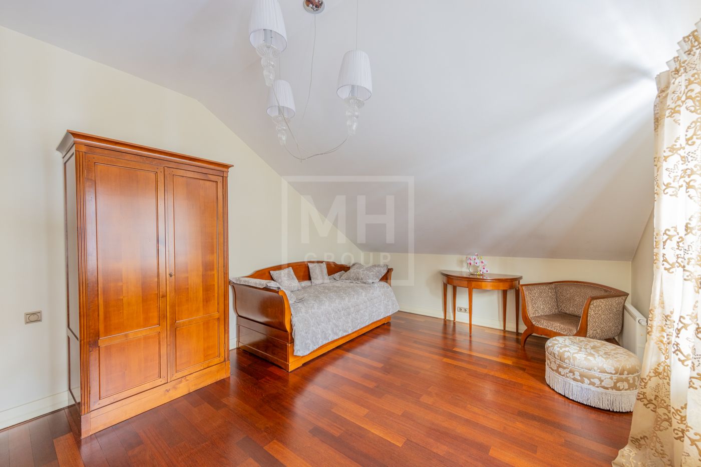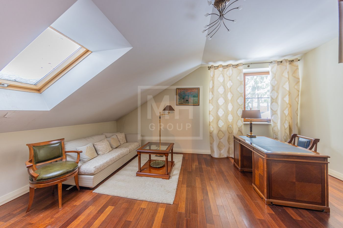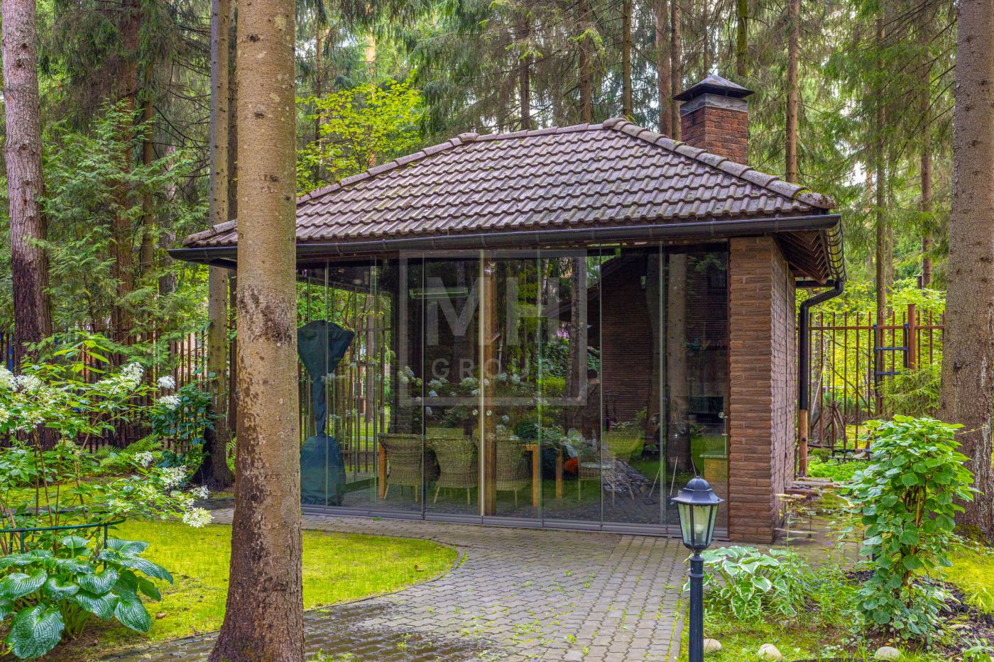 Уютный дом в поселке «Лесные Дали М». Отделка в доме завершена, дом готов к заселению. Планировкой предусмотрено 4 спальни, кухня, столовая, гостиная с камином и выходом на террасу, зимний сад, кабинет и блок для персонала. Мебель, бытовая техника и предметы декора предоставлены от ведущих мировых производителей. В отделке интерьера преобладают высококачественные натуральные материалы (дерево, камень).На просторном участке в 15 соток завершен ландшафтный дизайн с декоративными деревьями и кустарниками. На участке также расположена беседка-барбекю.