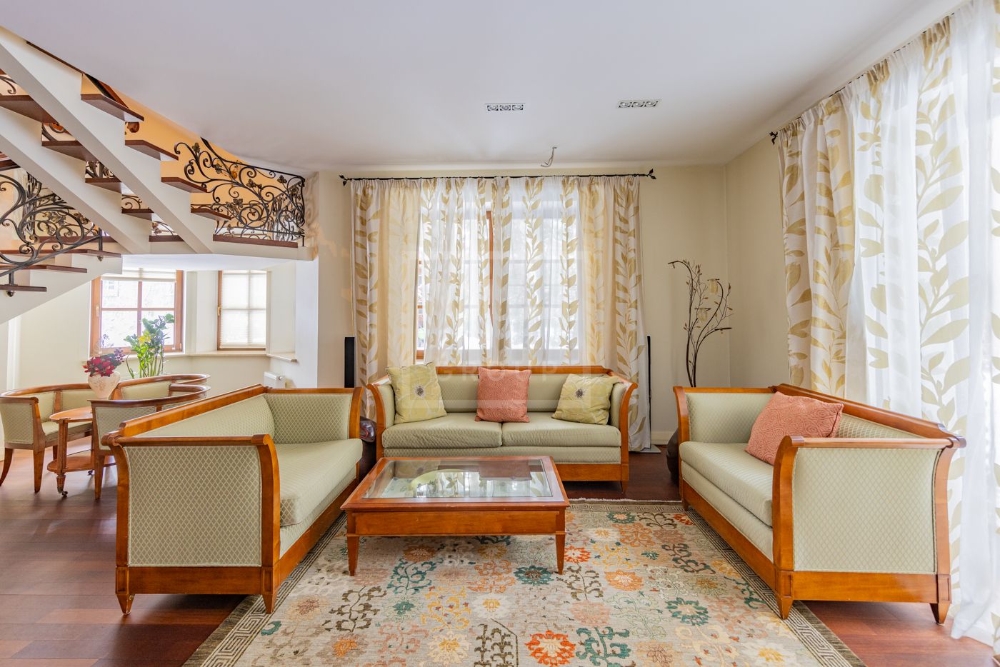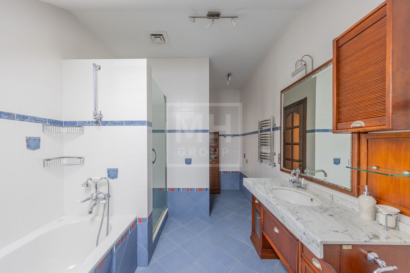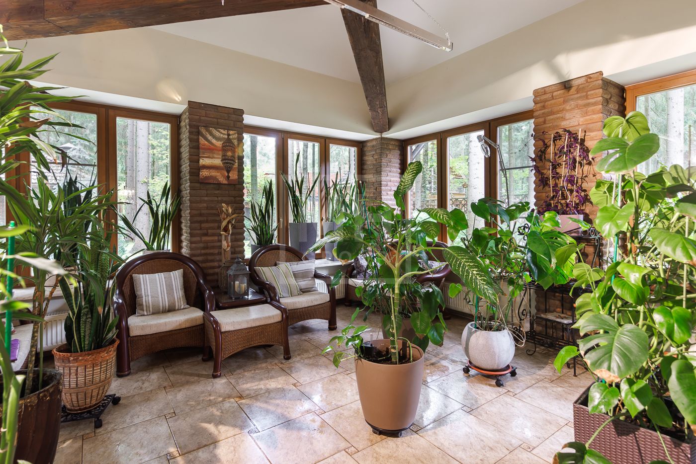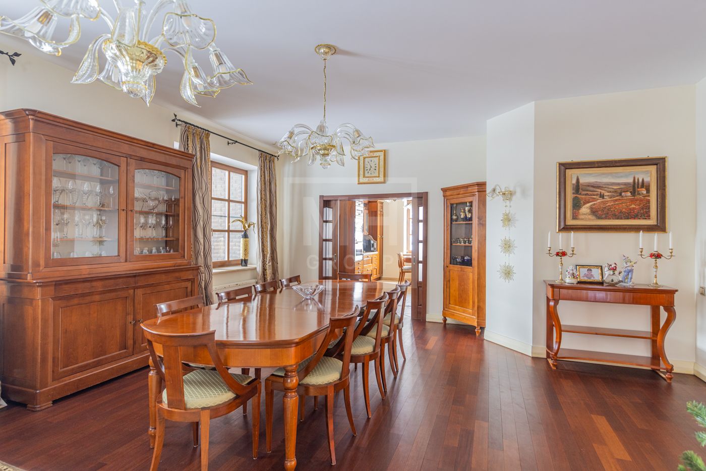 Уютный дом в поселке «Лесные Дали М». Отделка в доме завершена, дом готов к заселению. Планировкой предусмотрено 4 спальни, кухня, столовая, гостиная с камином и выходом на террасу, зимний сад, кабинет и блок для персонала. Мебель, бытовая техника и предметы декора предоставлены от ведущих мировых производителей. В отделке интерьера преобладают высококачественные натуральные материалы (дерево, камень).На просторном участке в 15 соток завершен ландшафтный дизайн с декоративными деревьями и кустарниками. На участке также расположена беседка-барбекю.