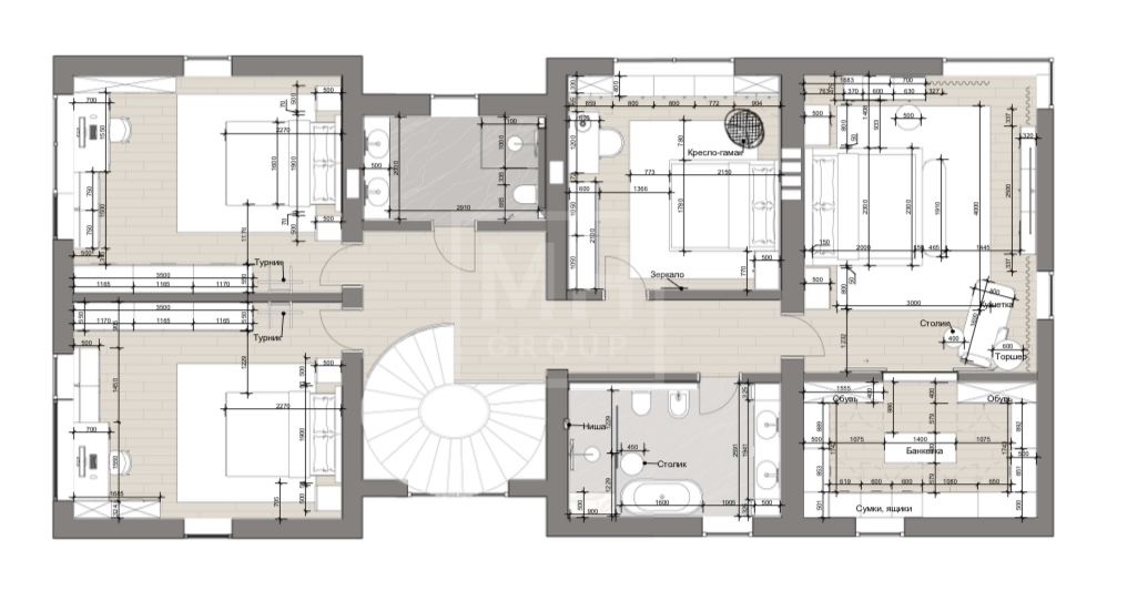 Этаж 2: Холл, 4 спальни, 2 с/у, гардеробная.