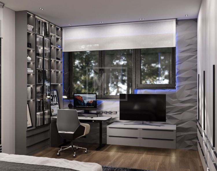 Этаж 1: Холл, гостиная, кухня-столовая, кабинет, гостевой санузел, постирочная, гараж.