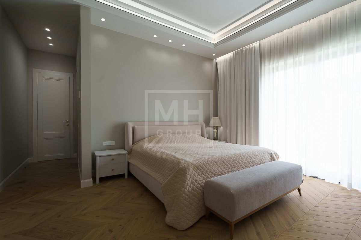 Уютный дом современном стиле с отделкой в одной из лучших локаций ближайшего Подмосковья.В доме предусмотрены: 4 спальни, 3 из которых со своими санузлами и гардеробными, кабинет, который так же можно переоборудовать в спальню, сауна, постирочная, блок для персонала с отдельным входом, гостиная, кухня, столовая, терраса. В собственности участок 12 соток, по факту 22 сотки.