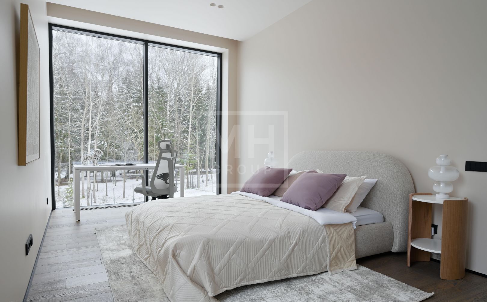 Новый современный дом площадью 627 кв. м на просторном участке 30 соток в престижном коттеджном посёлке Александрово. Удобное расположение — 30 км от МКАД по Новорижскому шоссе —обеспечивает быстрый доступ к разнообразной инфраструктуре и при этом сохраняет все преимущества, приватность и тишину для комфортной загородной жизни.Архитектура дома подчёркнуто современная и статусная. Панорамное остекление наполняет интерьеры естественным светом и открывает виды на зелёное окружение. Высота потолков от 3,2 до 3,4 м усиливает ощущение простора. Дом оснащён системой «умный дом», обеспечивающей высокий уровень комфорта, безопасности и энергоэффективности.