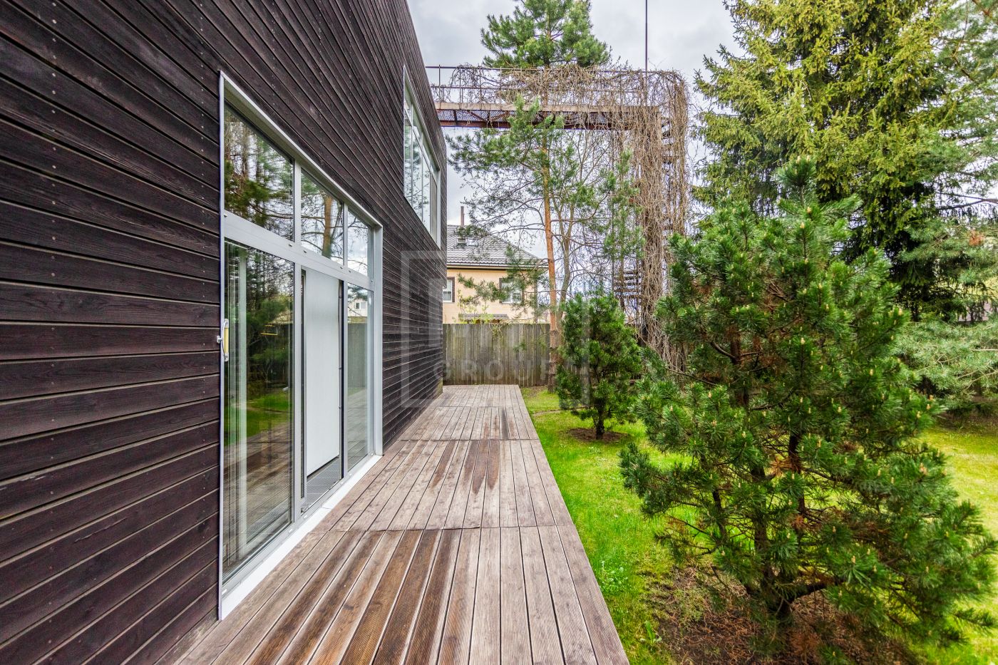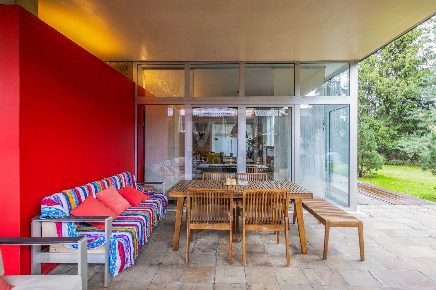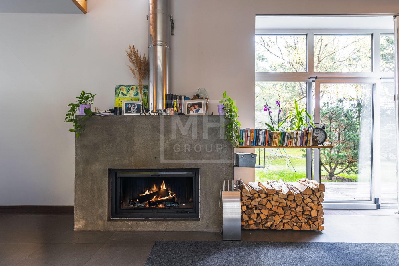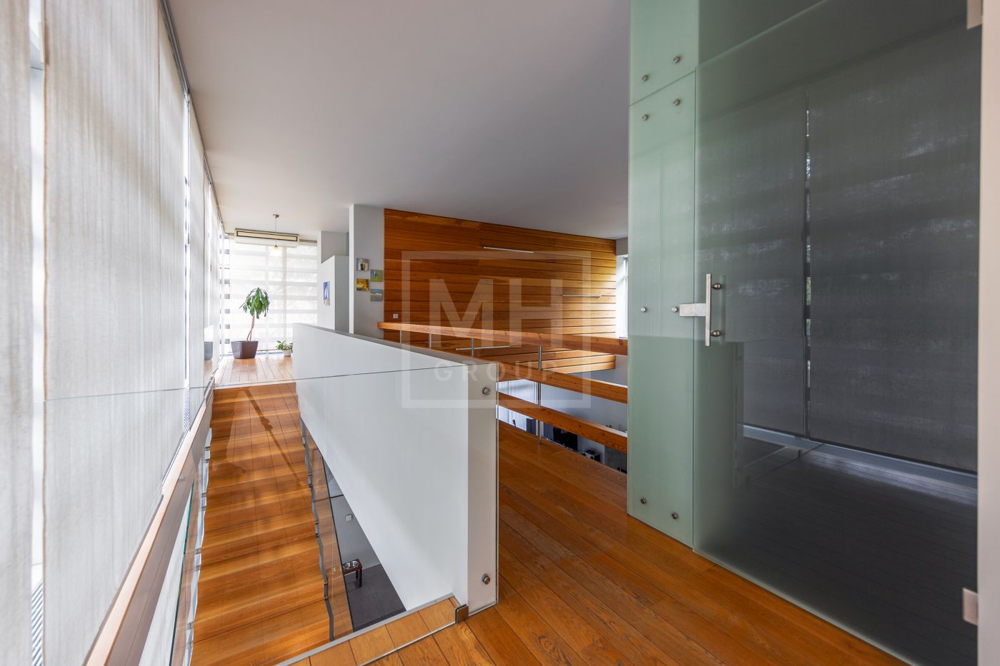 Предлагается к продаже стильный дом площадью 265.9 м², спроектированный архитектором Евгением Ассом. Дом расположен на живописном лесном участке с соснами площадью 20.85 соток. На участке идеальная тишина. Удобный выезд на платную дорогу обеспечивает легкий доступ к основным транспортным артериям и центру столицы. В непосредственной близости находятся ресторан La Colline, Рублевский привоз и Crocus Fitness.