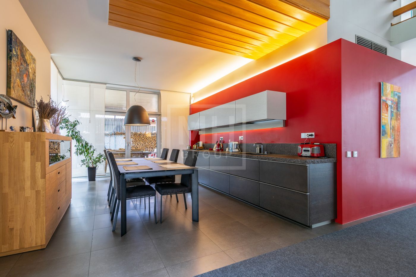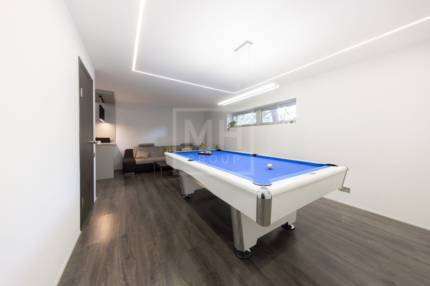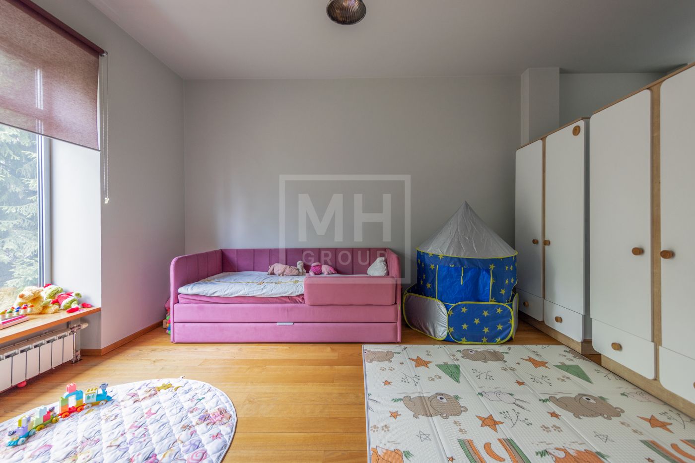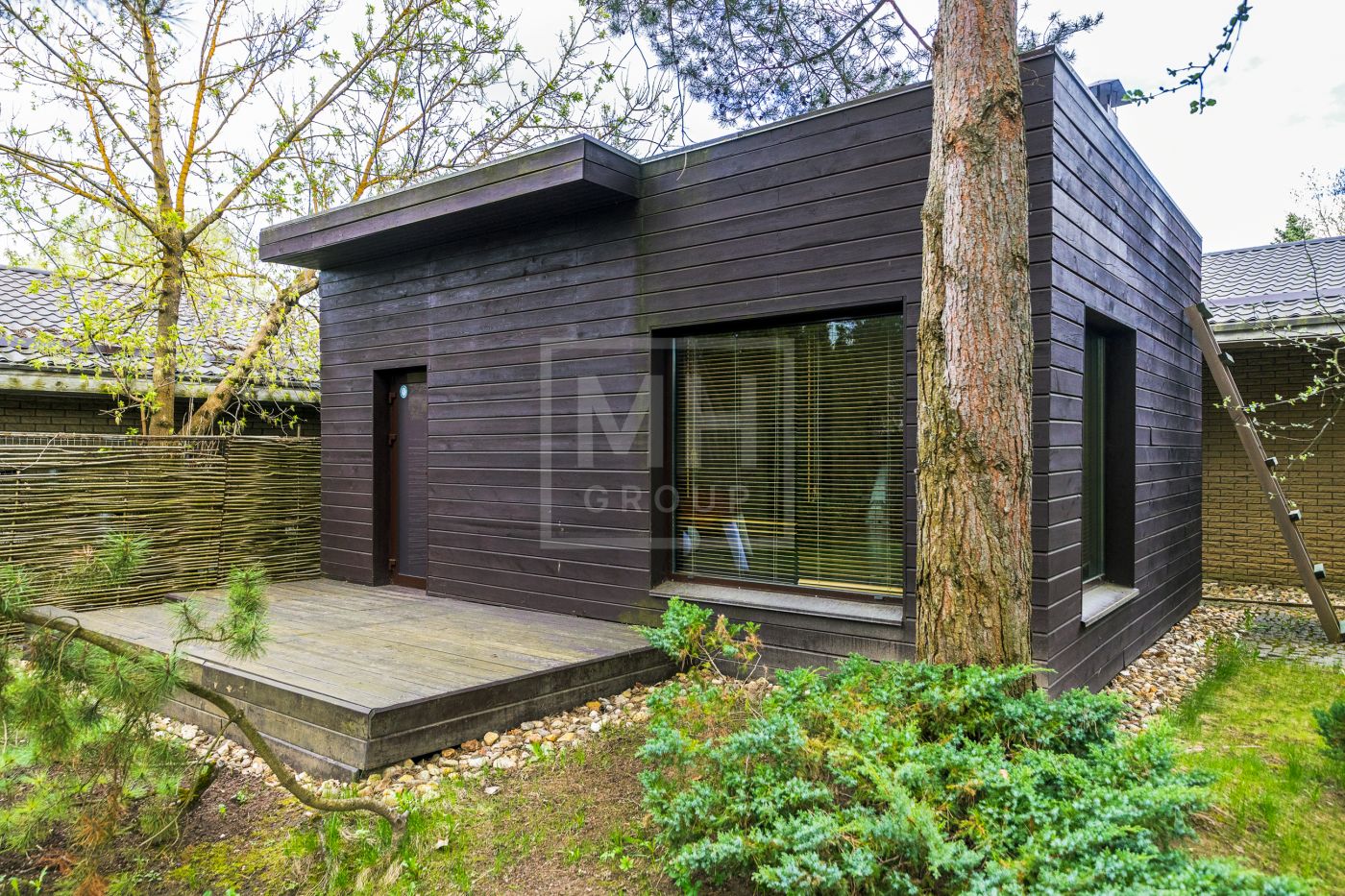 Предлагается к продаже стильный дом площадью 265.9 м², спроектированный архитектором Евгением Ассом. Дом расположен на живописном лесном участке с соснами площадью 20.85 соток. На участке идеальная тишина. Удобный выезд на платную дорогу обеспечивает легкий доступ к основным транспортным артериям и центру столицы. В непосредственной близости находятся ресторан La Colline, Рублевский привоз и Crocus Fitness.