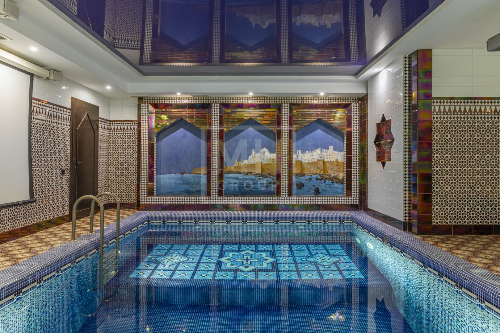 Этаж 1: тамбур, 2 гардеробные, холл, с/у, гостиная, кухня-столовая с выходом на веранду, кабинет, комната свободного назначения с выходом на веранду, блок СПА: холл, бассейн, душевая, хамам, котельная.