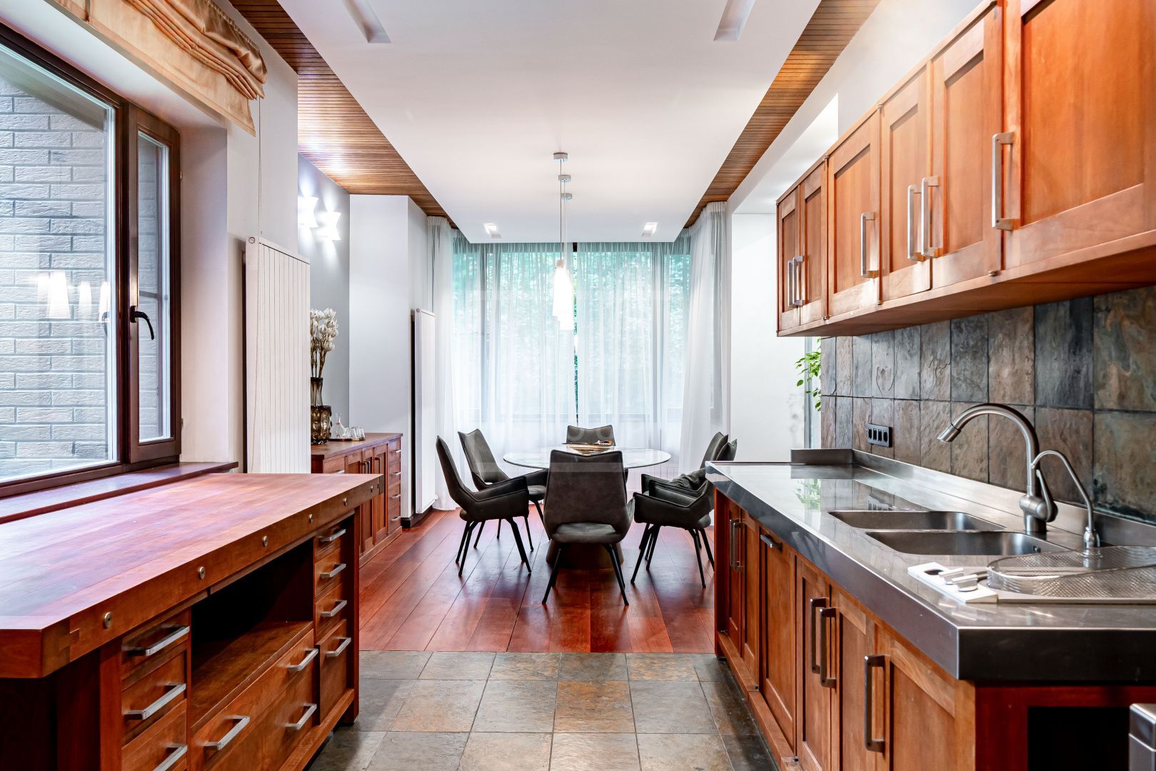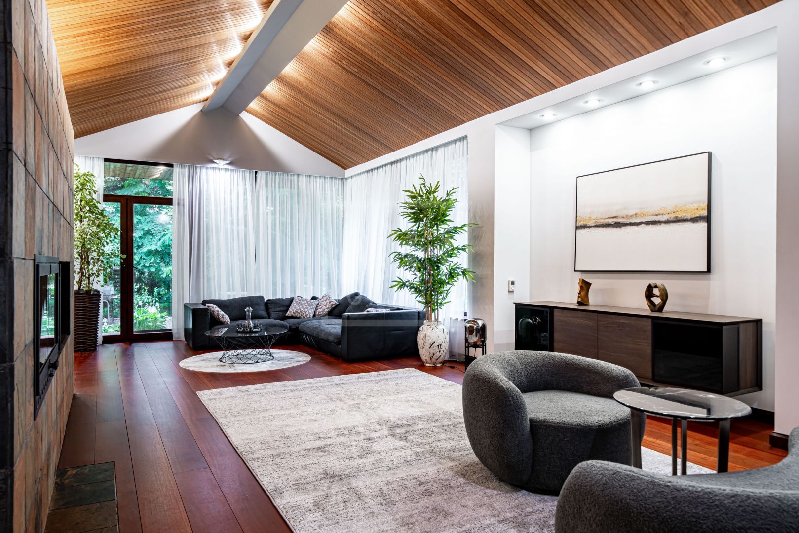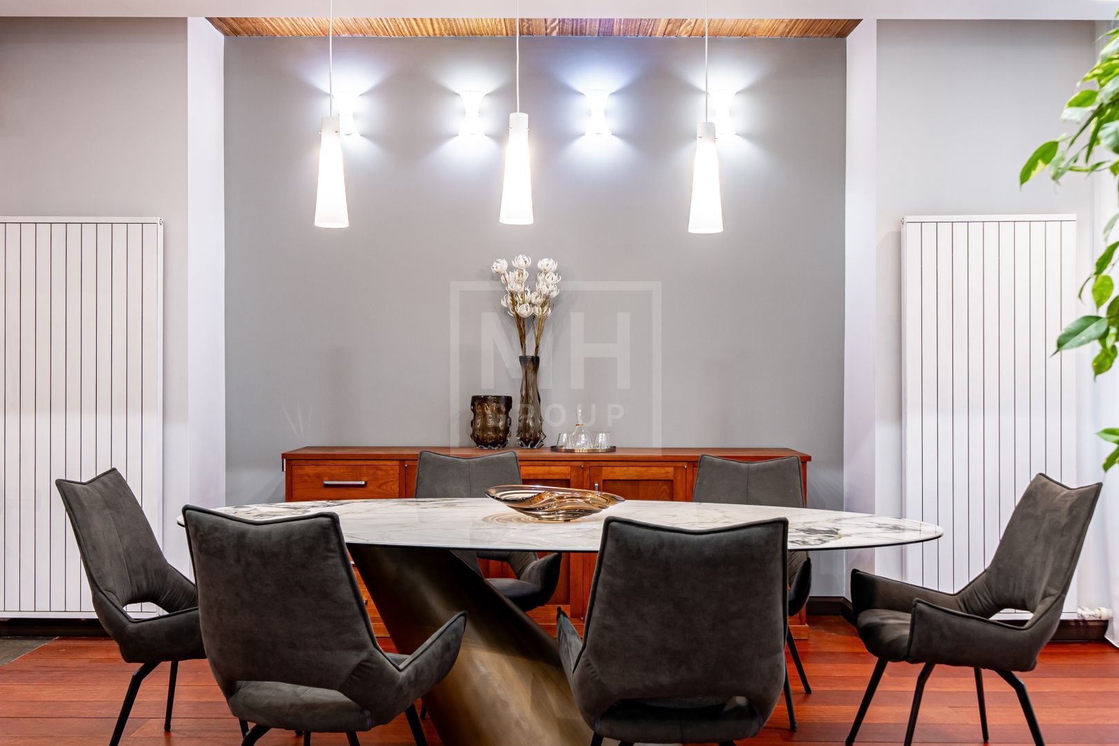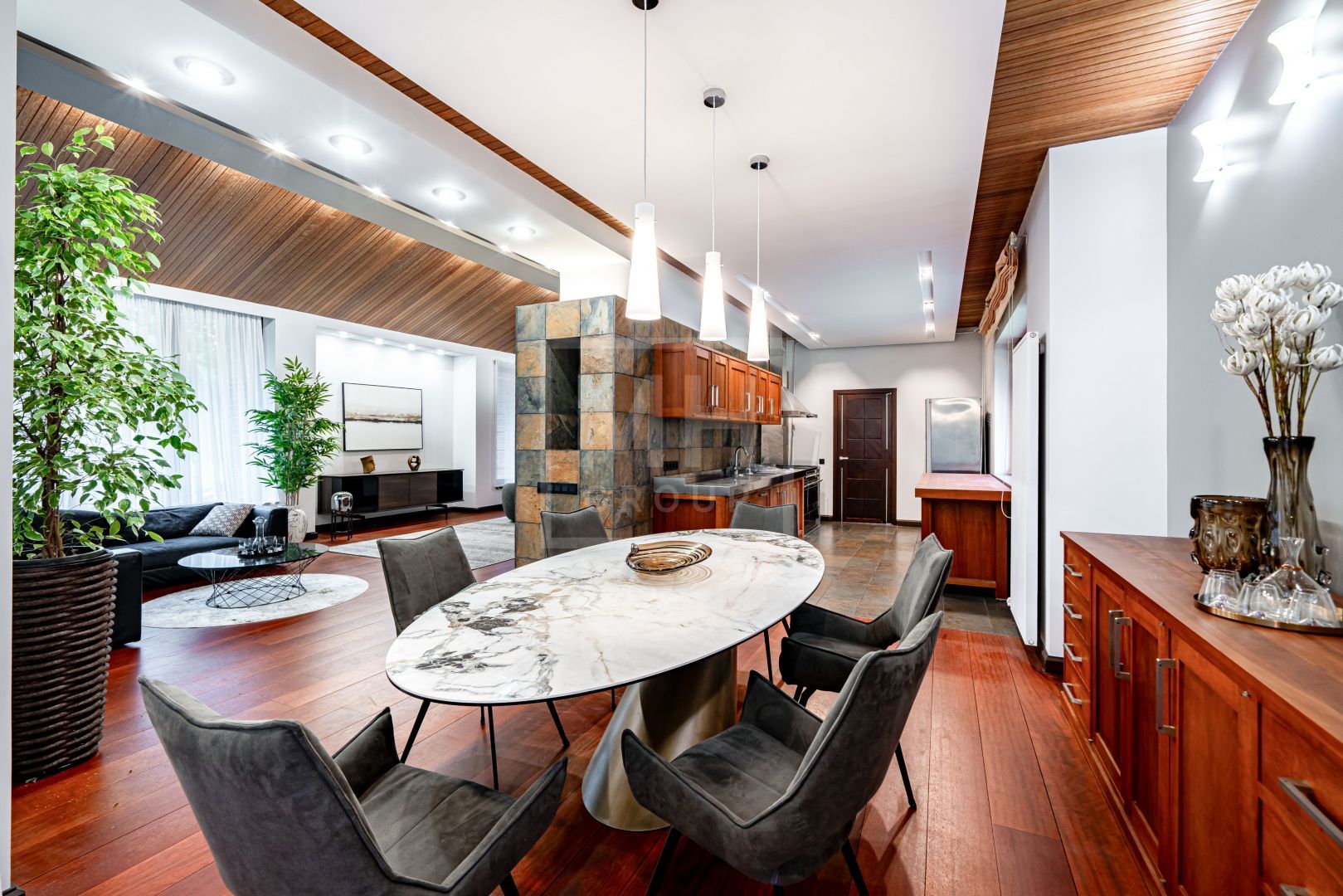 "Лесной Ручей -3" был спроектирован в едином стиле- "органической архитектуры", прообразом служила идеология Френка Ллойда Райта. Все дома гармонично вписаны в природный ландшафт. Для строительства использованы природные материалы: кирпич, клинкер, стекло, дерево, керамика, которые целесообразны для средней полосы России. Строительство вела компания " Глетчер"- опытный, надежный девелопер загородной недвижимости в сегменте "бизнес +" и "элит".Дом в темно-коричневых тонах от стен до кровли представляет из себя 2 соединенных объема прямоугольных форм. Идеальное размещение на участке, дает возможность, не только удобно парковать автомобили под отдельно стоящий навес ( заботясь об экологии дома), но и наслаждаться прекрасными видами из панорамных окон любой комнаты или балкона. Просторный холл первого этажа объединяет весь дом и одновременно направляет движение по нему, здесь расположена удобная двух маршевая лестница на второй этаж . Одноэтажная гостиная столовая имеет двускатную форму потолка, подшитую натуральным деревом, сразу определяя загородный формат. Зона кухни, столовой, гостиной с выходом на веранду объединены в единое пространство и имеют круговое движение. В гостиной центральное место занимает дровяной камин, интегрированный в стену, облицованную натуральным сланцем в природных оттенках от желтого до терракотового. Уединиться и поработать можно в кабинете, рядом с которым находится вторая гостиная, сочетающая в себе библиотеку и ТВ-зону, с выходом на большую веранду. Зона СПА в марокканском духе приглашает отдохнуть на лежаках у бассейна и расслабиться в хаммаме, предусмотрен выход на улицу. Второй этаж полностью отведен под спальни. На участке выполнено уличное освещение, оформлены декоративные миксбордеры, выложена тропиночная сеть, под окнами кухни вазоны для выращивания зелени к столу, в тенистой части располагается площадка для медитации, в дальней углу участка под кронами деревьев находится уединенная беседка.