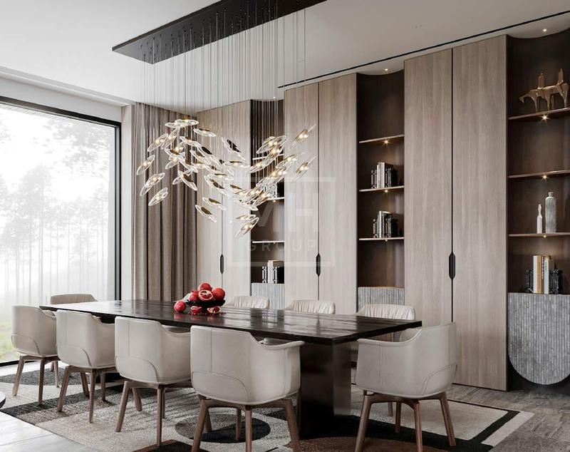 Новый современный дом в поселке Резиденции Березки на Рублево-Успенском шоссе. Архитектура дома поражает своей элегантностью и продуманностью. Панорамное остекление подчеркивает современный стиль и обеспечивает максимальное естественное освещение. Внутреннее пространство дома, площадью 1100 квадратных метров, включает пять спален и семь ванных комнат, что позволяет с комфортом разместить большую семью. Особое внимание уделено зонам отдыха: бассейн, сауна, хамам и SPA создают атмосферу настоящего курорта прямо у вас дома.Этот архитектурный шедевр предлагает своим владельцам уникальное сочетание премиальности и гармонии с природой. Здесь царит атмосфера спокойствия и респектабельности, создавая идеальные условия для семейного уюта и комфортной жизни.