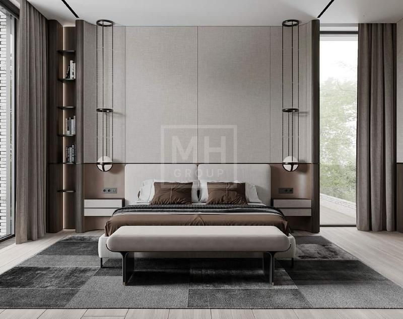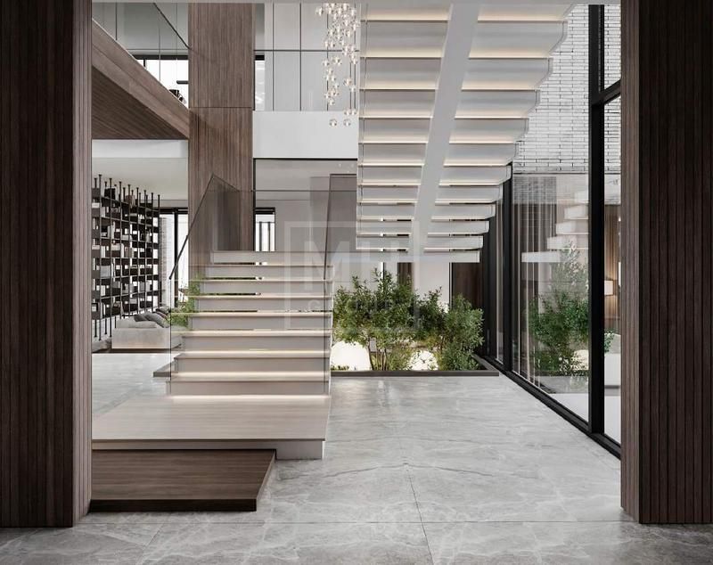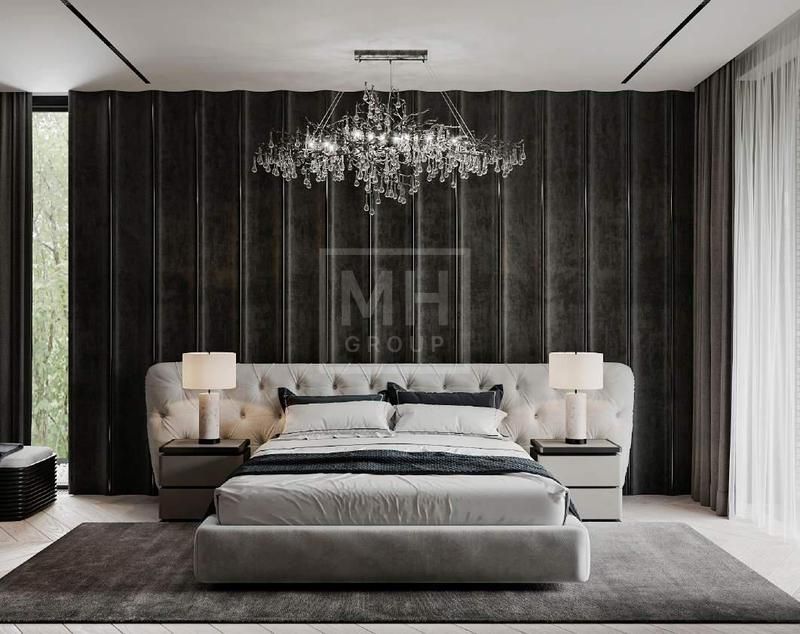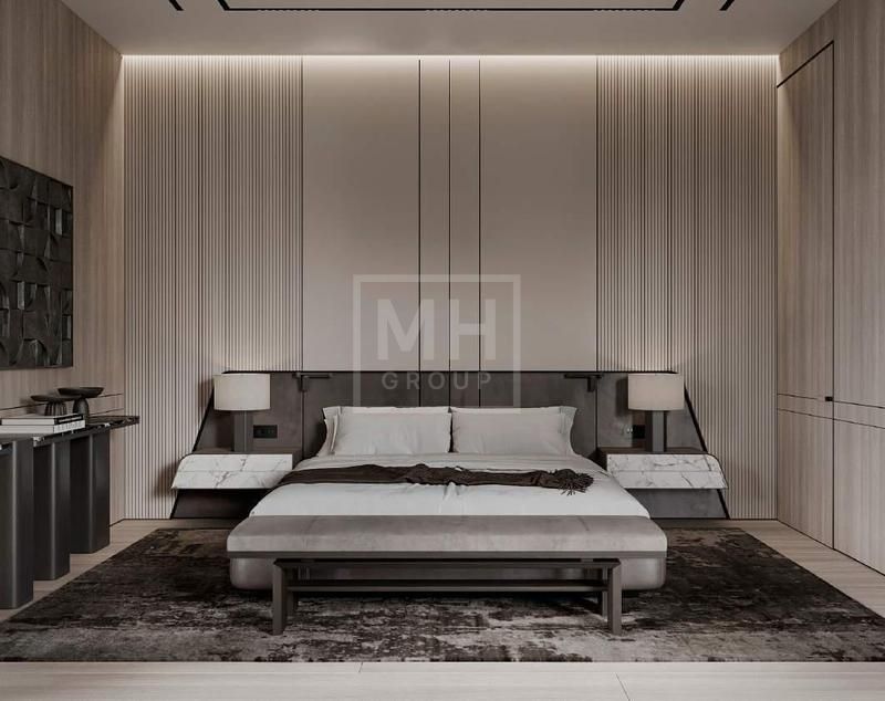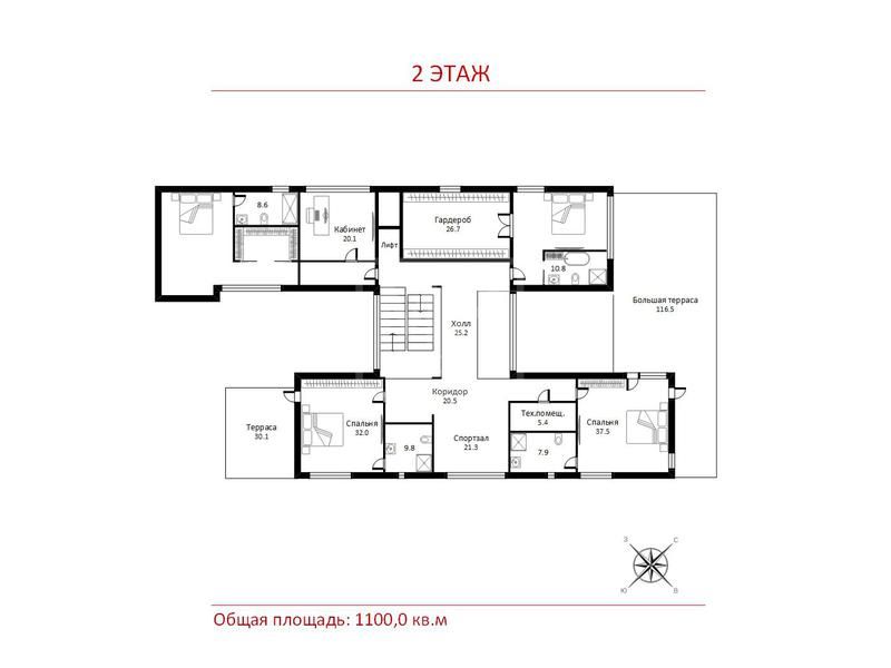 Этаж 2: Мастер блок: мужская зона: спальня с с/у, гардеробная, кабинет, зона женская: спальня с большим гардеробом, с/у, и выходом на большую просторную террасу, спортзал, 2 детские спальни со своими с/у и и выходом на просторную террасу