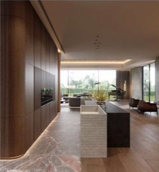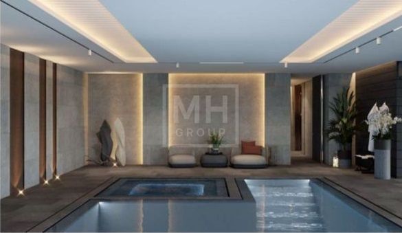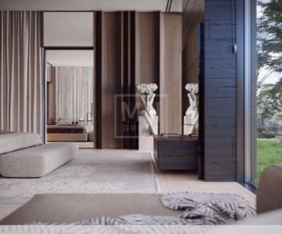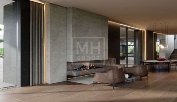 Этаж 1: Прихожая-холл, 2 гардеробные, объединенное пространство гостиной столовой и парадной кухни с выходом на просторную террасу-патио, профессиональная кухня для шеф-повара, кабинет, гостевая спальня с с/у; в отдельном крыле расположены: SPA с зоной отдыха, массажной, сауной, хамам, бассейном, раздевалками, душевыми, с/у, а также вспомогательные хозяйственные и тех. помещения (кладовые, постирочная, помещение котельной, серверная) и отдельный блок персонала: 2 комнаты, кухня, 2 с/у; гараж в контре доме на 2 м/м.
