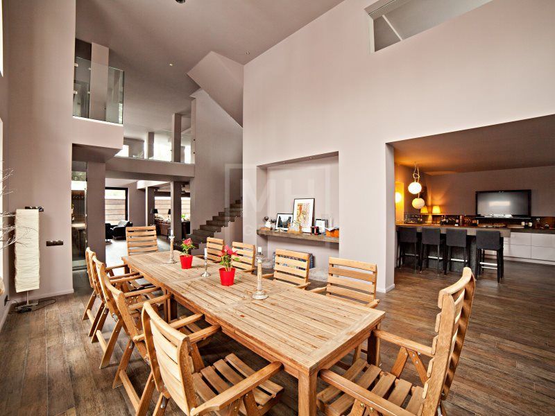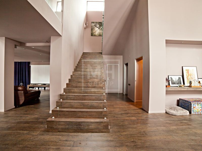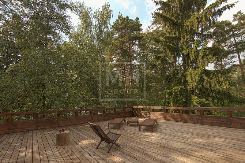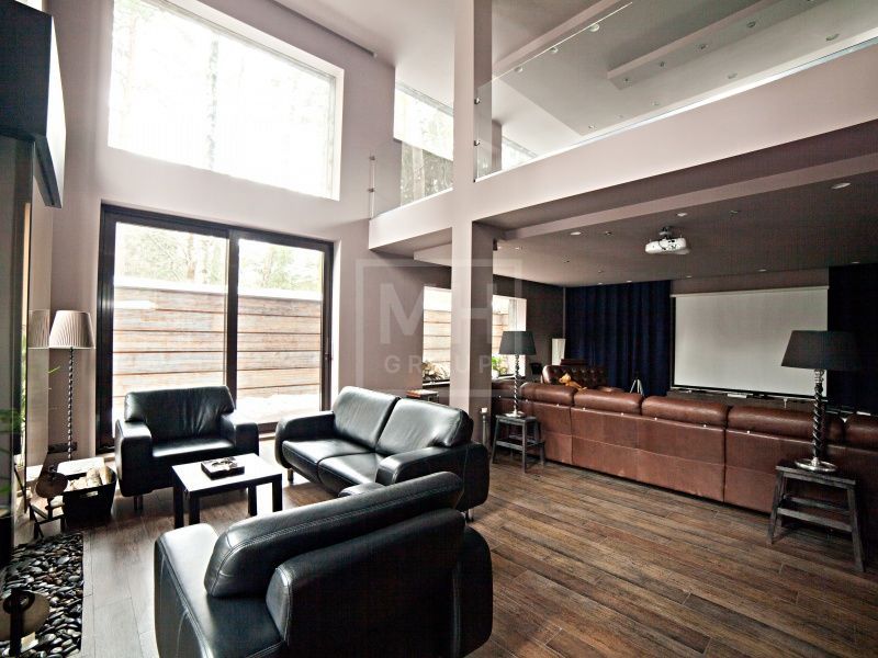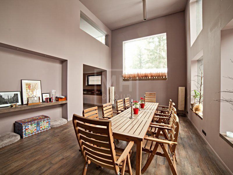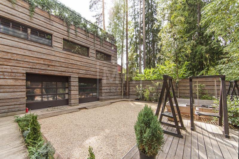 Современный дом в стиле Райта в самом центре Жуковки. Много пространства, интересная планировка. В доме есть лифт и эксплуатируемая кровля с зоной отдыха и барбекью. На участке вековые сосны. Соседи построены, тихо.