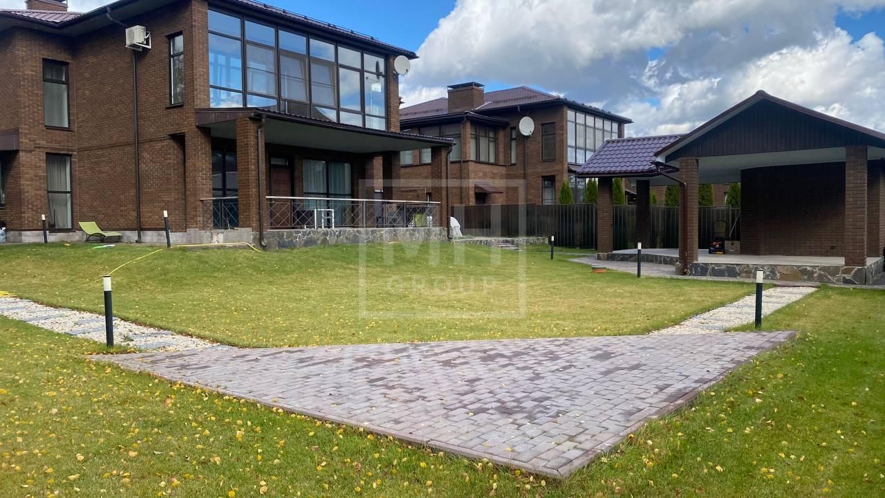 На участке выполнены работы по благоустройству двора (ландшафтный дизайн с системой полива).