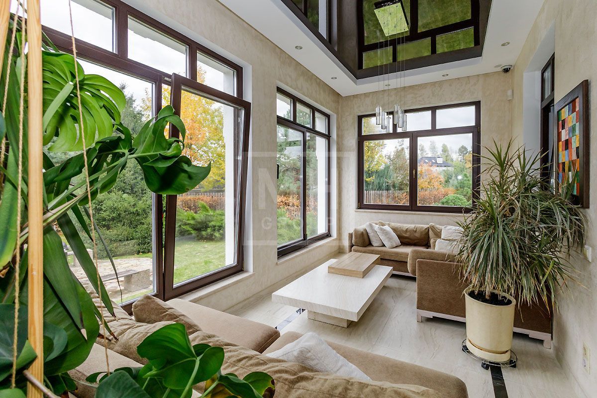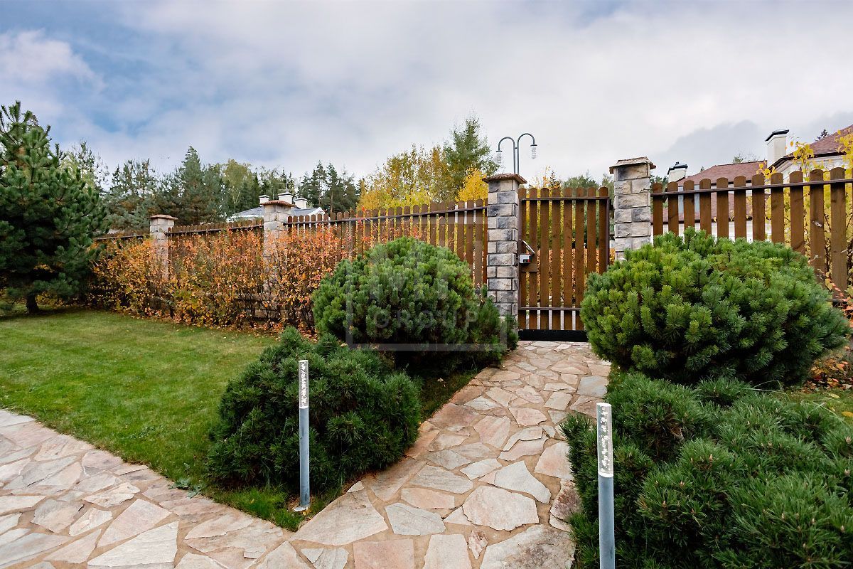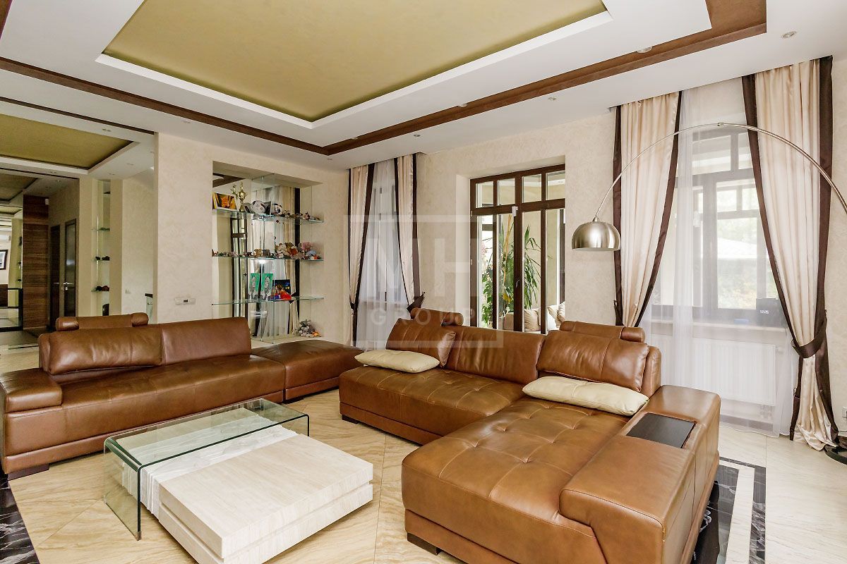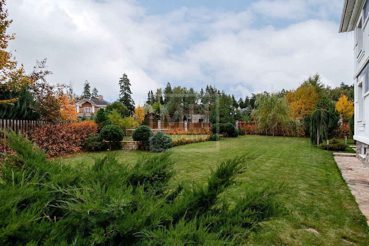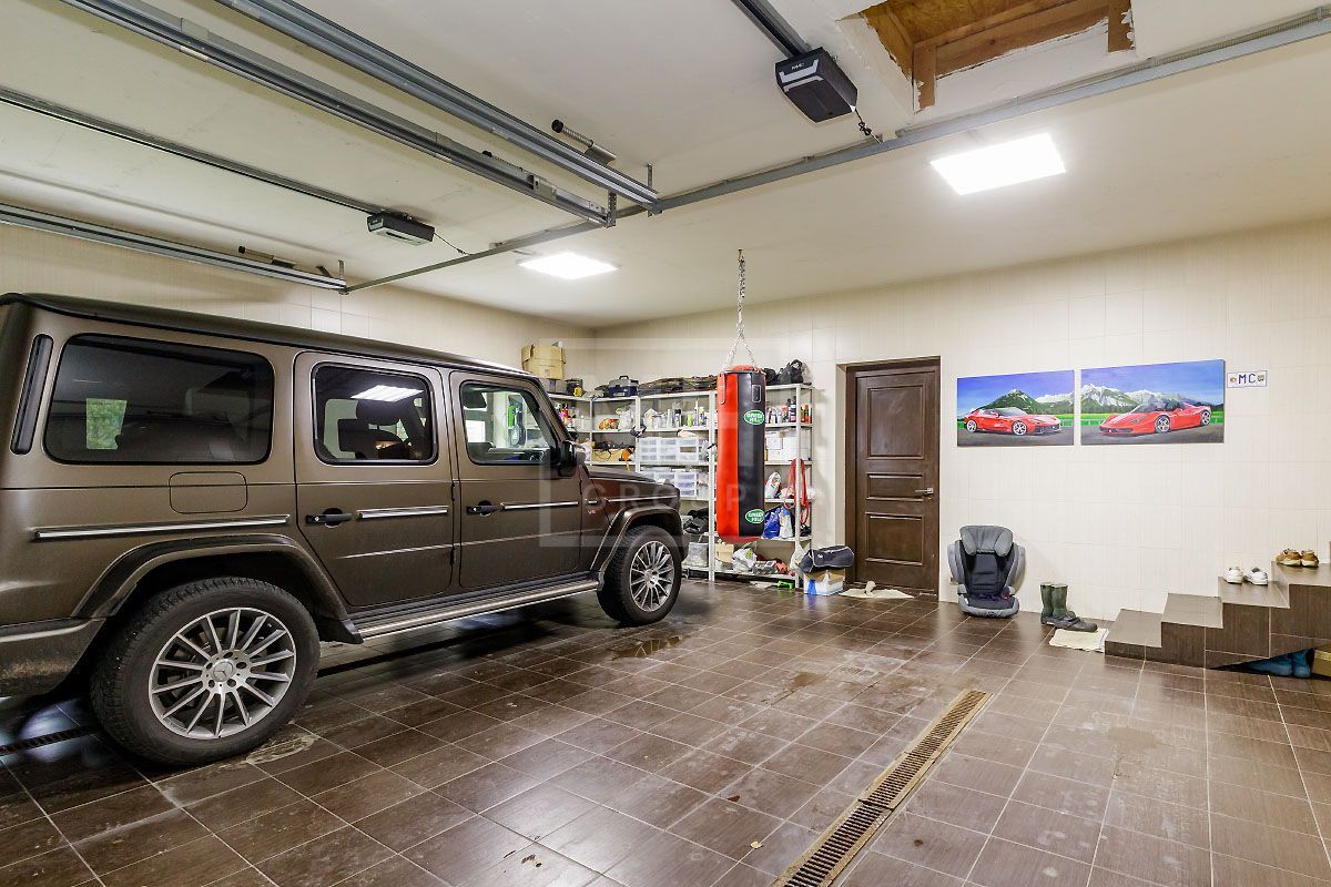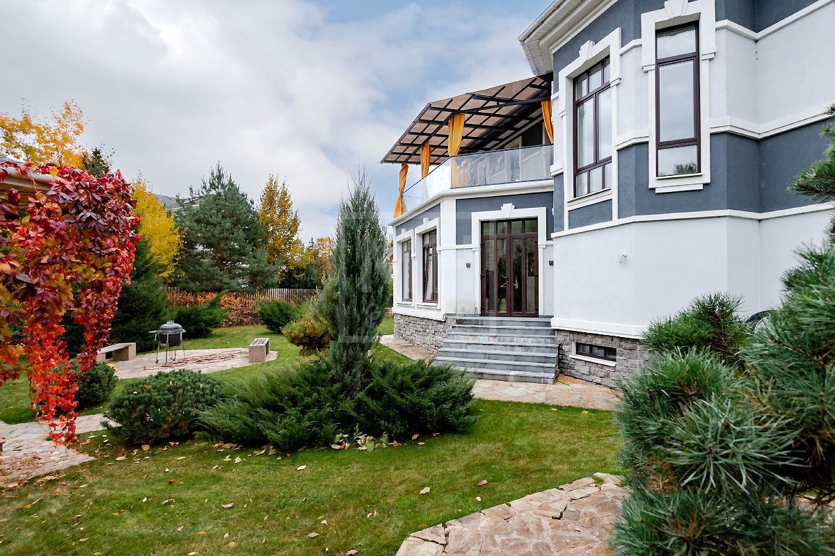 Большой современный дом в закрытом охраняемом посёлке с хорошей инфраструктурой. Расположен на тупиковой улице, примыкающей к лесу. Полностью меблирован и готов к проживанию. Высокие потолки. Из гостиной выход в зимний сад. Бар и тренажерный зал. Современный ремонт с использованием натуральных материалов: мрамор, дерево. Есть помещение для персонала. Охранная сигнализация, система видеонаблюдения. В котельной оборудование Buderus с обвязкой медью.Прилесной ухоженный участок с ландшафтным дизайном. На участке взрослые деревья. Летняя терраса 60 м2. Теплица 25 м2 с системой вентиляции, автополива, водой и электричеством. Система полива участка и деревьев. Подсветка участка и деревьев. Гараж на два автомобиля. Ливневая канализация. Все дорожки выложены из брусчатки. Есть площадка на два автомобиля.