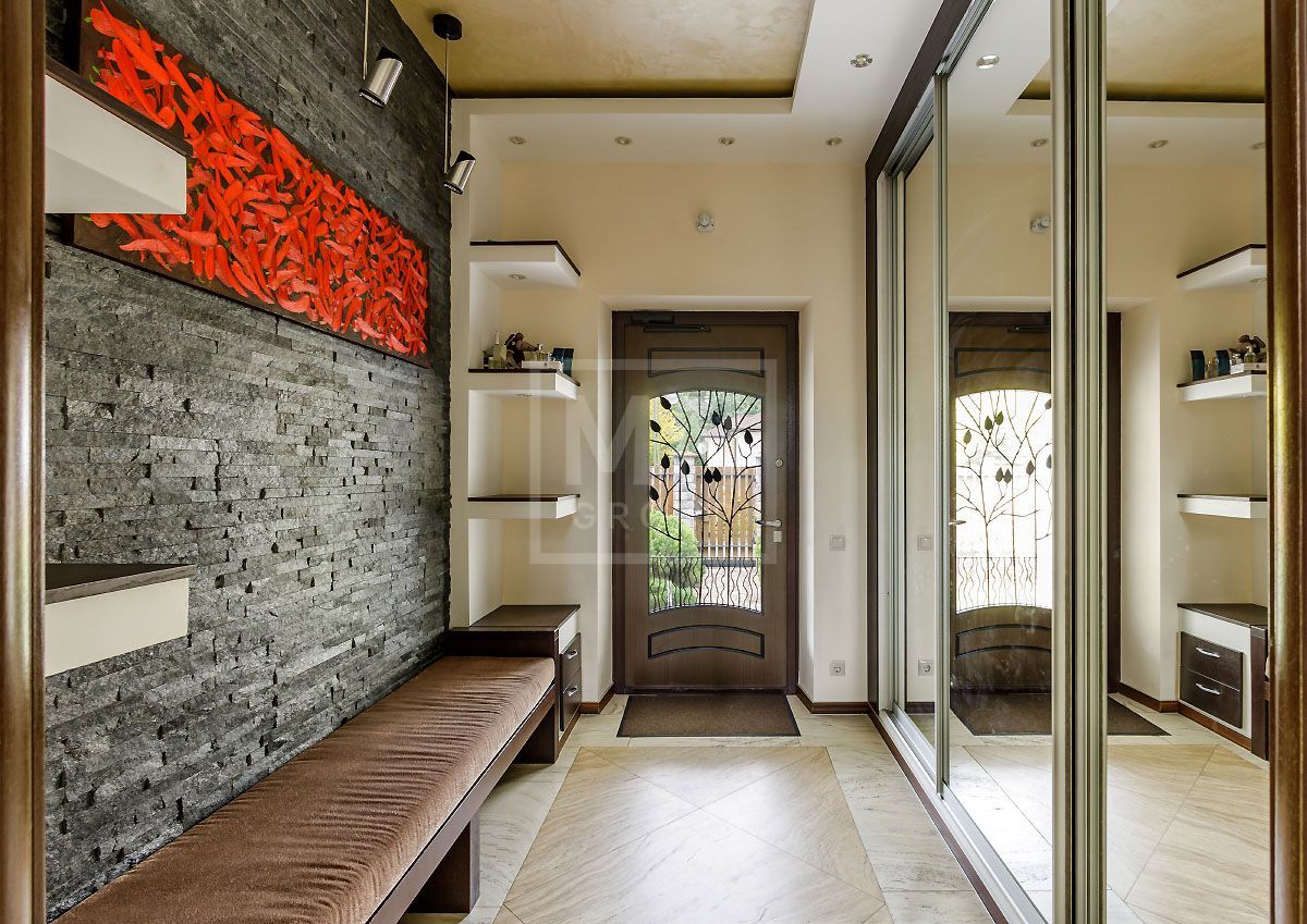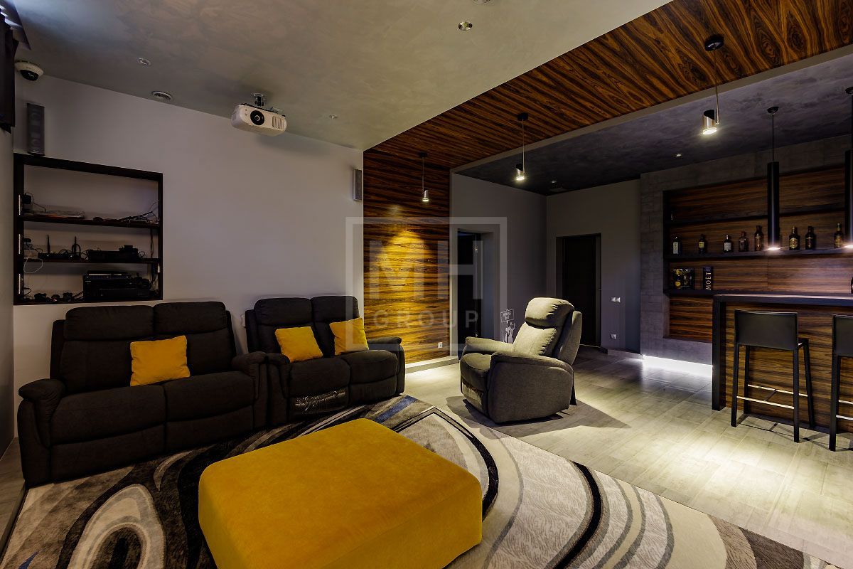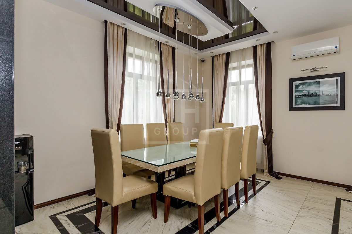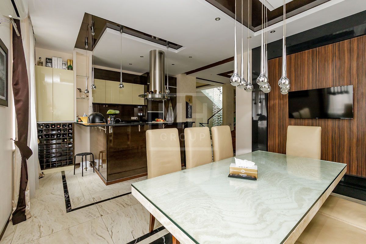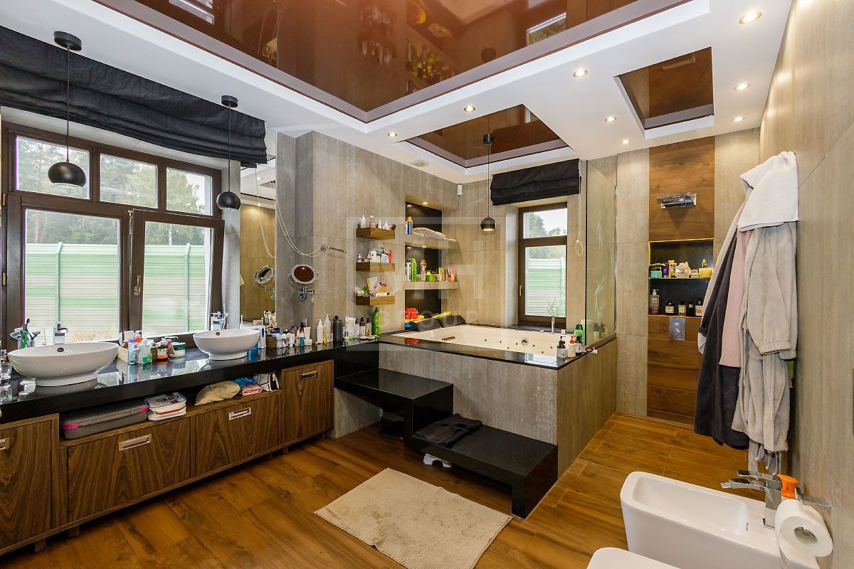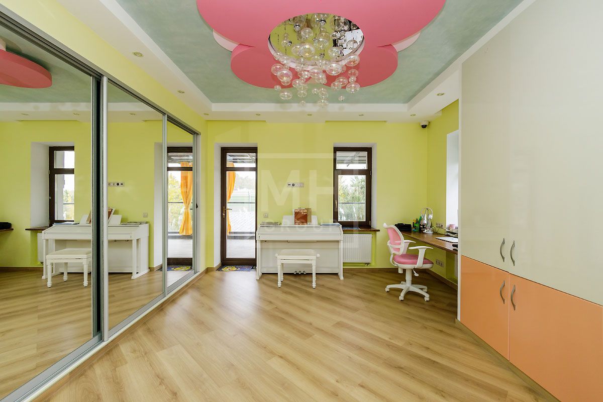 Большой современный дом в закрытом охраняемом посёлке с хорошей инфраструктурой. Расположен на тупиковой улице, примыкающей к лесу. Полностью меблирован и готов к проживанию. Высокие потолки. Из гостиной выход в зимний сад. Бар и тренажерный зал. Современный ремонт с использованием натуральных материалов: мрамор, дерево. Есть помещение для персонала. Охранная сигнализация, система видеонаблюдения. В котельной оборудование Buderus с обвязкой медью.Прилесной ухоженный участок с ландшафтным дизайном. На участке взрослые деревья. Летняя терраса 60 м2. Теплица 25 м2 с системой вентиляции, автополива, водой и электричеством. Система полива участка и деревьев. Подсветка участка и деревьев. Гараж на два автомобиля. Ливневая канализация. Все дорожки выложены из брусчатки. Есть площадка на два автомобиля.