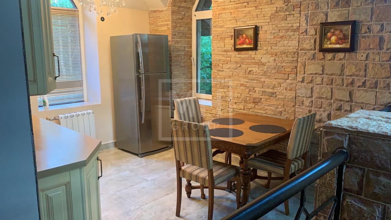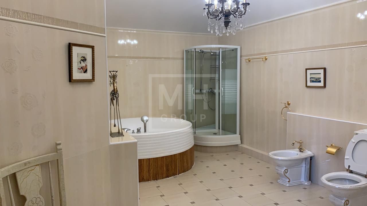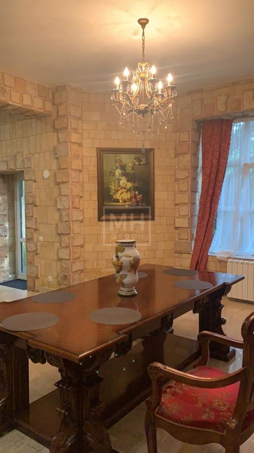 Прекрасный дом представительского класса в замковом стиле с дорогой мебелью и сантехникой. Помимо основного дома на участке расположен СПА-центр с бассейном 12 метров, сауной и зоной отдыха, а также гараж на 2 авто и дом для персонала. Также есть большой открытый бассейн -20 метров. На участке выполнен ландшафтный дизайн, беседки, растут большие деревья.