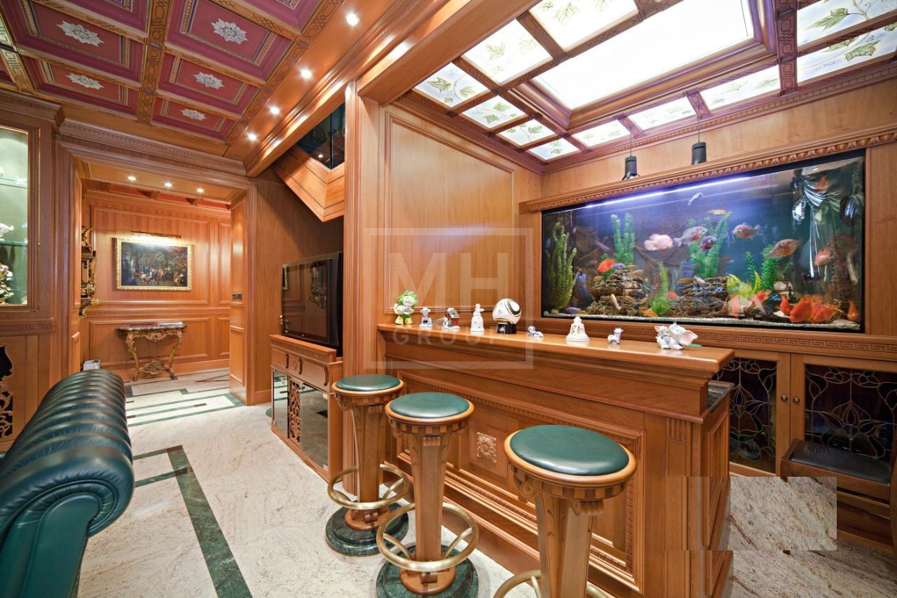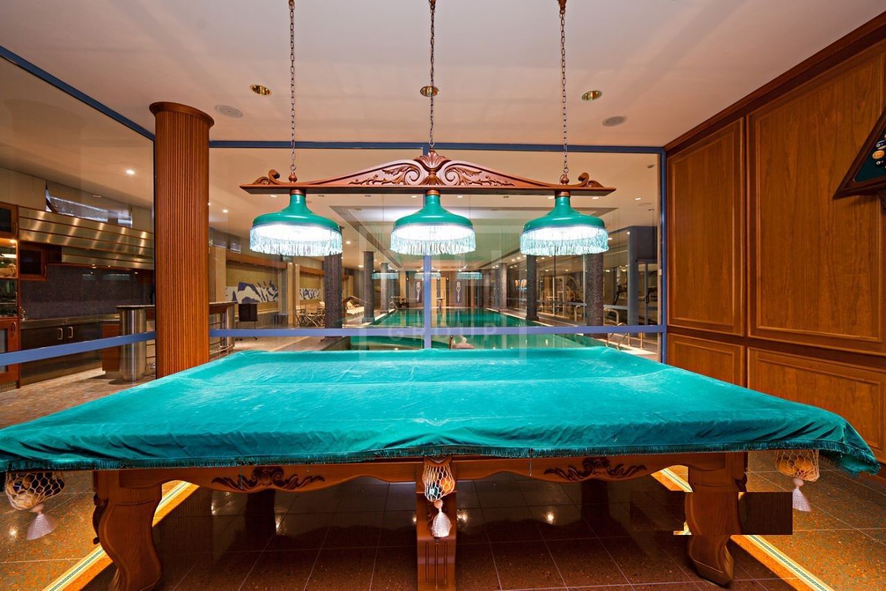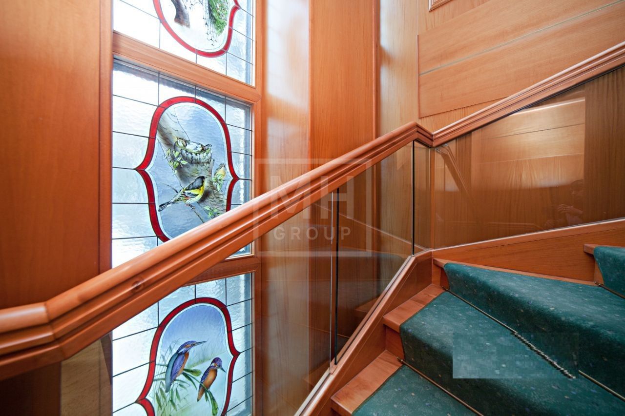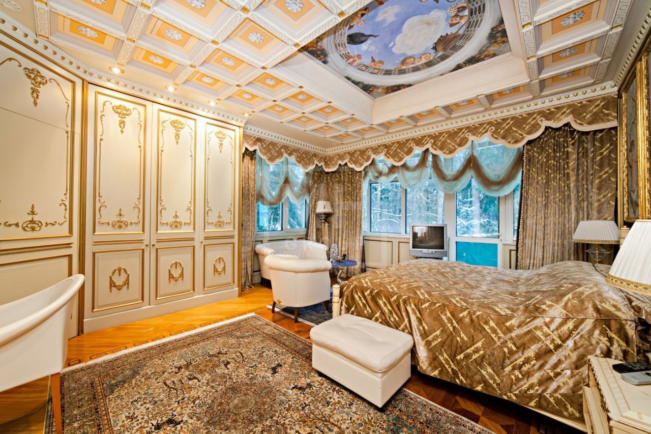 Прекрасный архитектурный ансамбль в старой доброй Академической Жуковке, вдали от шумных дорог, состоящий из основного дома, дома охраны и гостевого дома, а также спортивного комплекса с теннисным кортом. В отделке основного дома использованы дорогие сорта мрамора и дерева, витражи ручной работы, фрески на стенах и потолке, уникальные виды паркета и мебели, привезенные из Европы. Гостевой дом состоит из 2-х этажей: 1 этаж - холл, кухня , гостиная, с/у; 2 этаж - холл, 3 спальни, 2 с/у, Дом для охраны включает гараж и квартиру для персонала с 2-мя спальнями на втором этаже над гаражом.На участке расположен спортивный комплекс с теннисным кортом, бассейном, баром, с/у сауна, хамам, спортзал, профессиональная кухня.