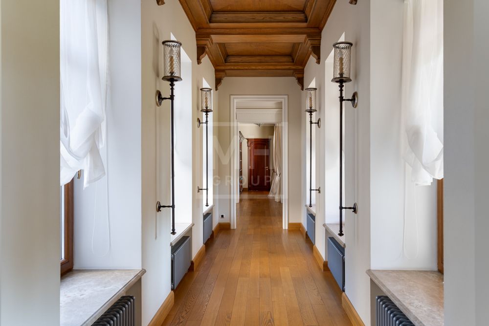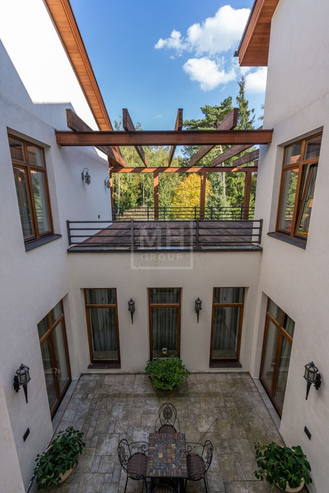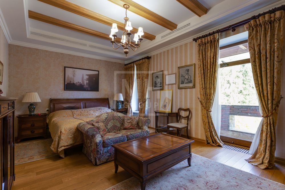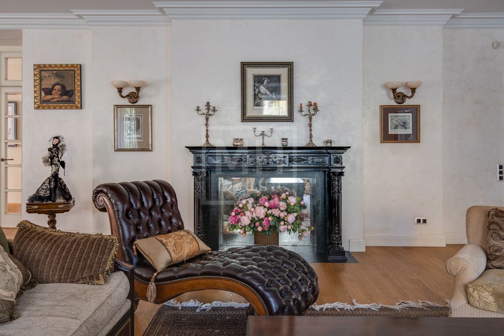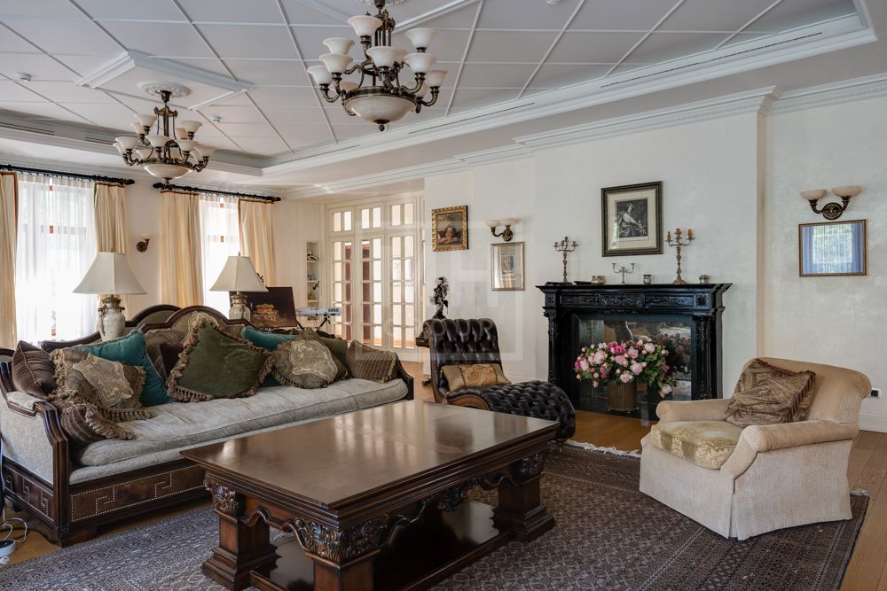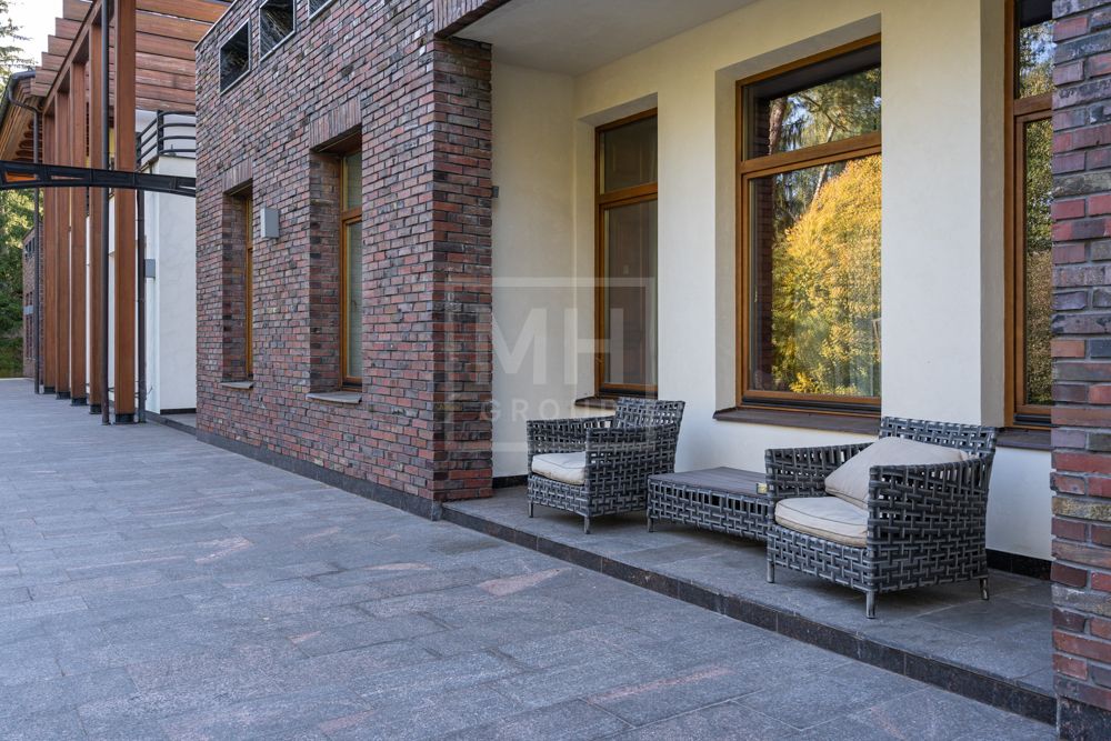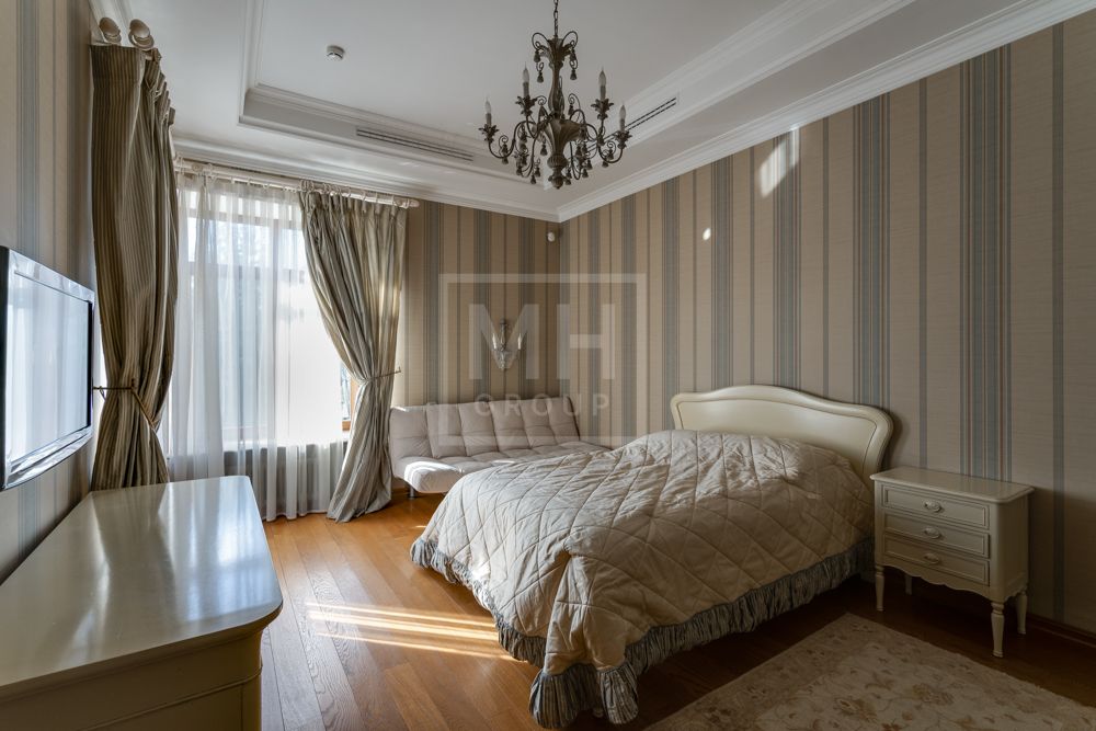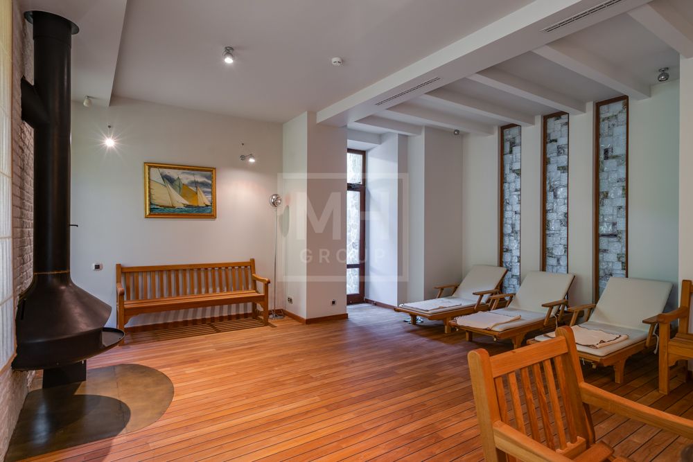 Предлагается великолепная под ключ с мебелью трехуровневая загородная резиденция, построенная на огромном живописном лесном участке с дорогим ландшафтным дизайном, в охраняемом коттеджном поселке "Мозжинка".Усадьба состоит из трех строений: основной дом, соединенный подземным проходом со служебным флигелем, в котором расположен гараж на шесть машин, также при въезде на территорию есть дом для охраны.