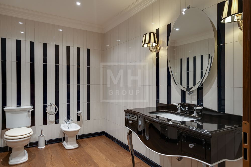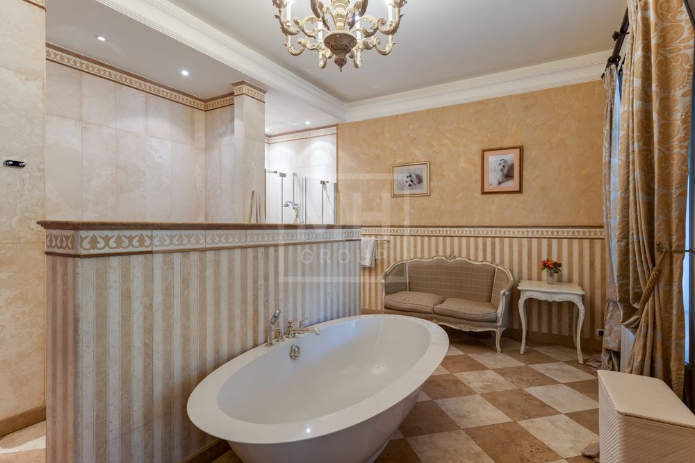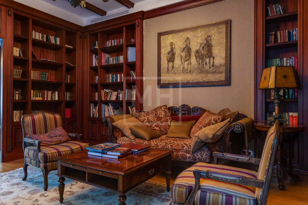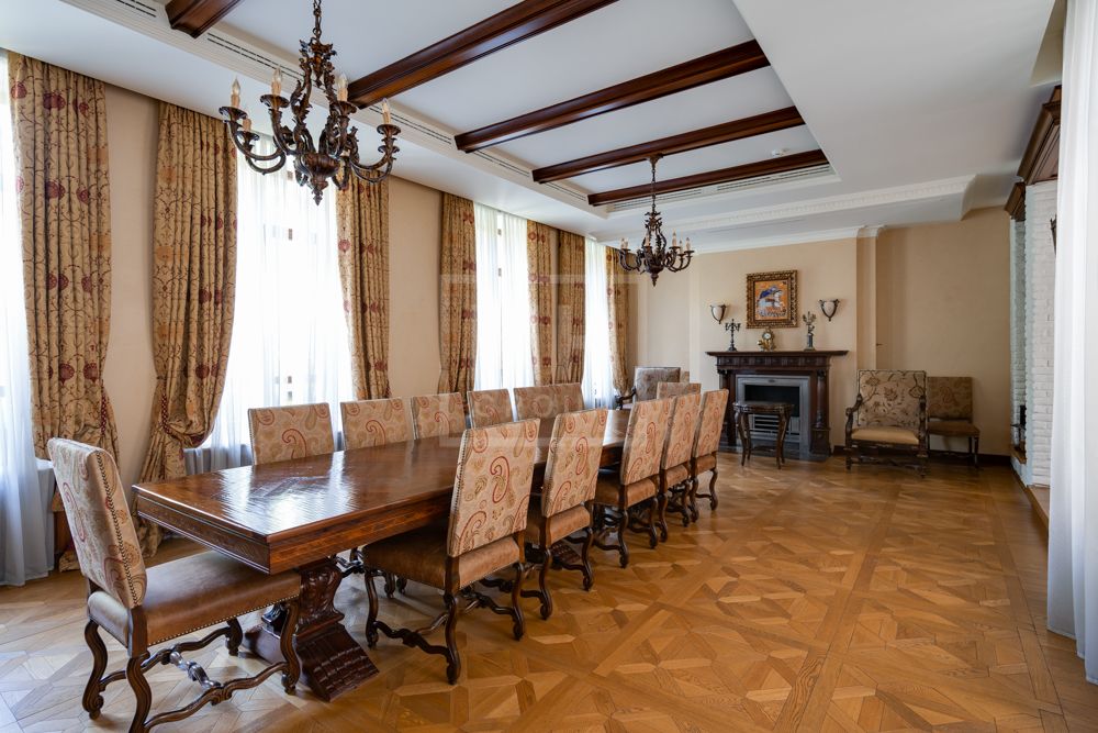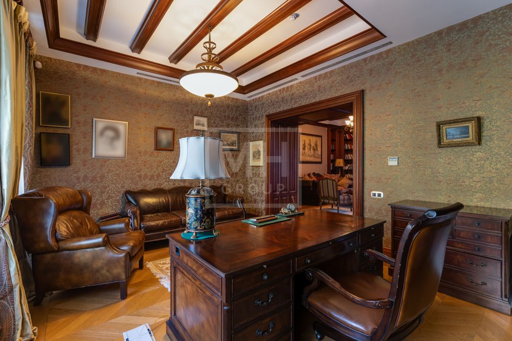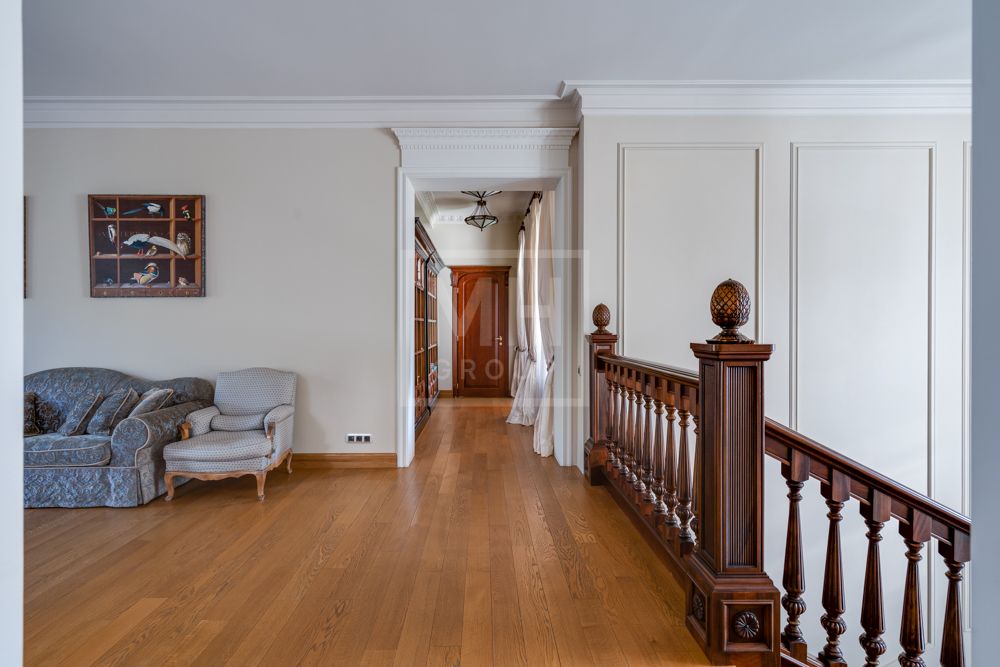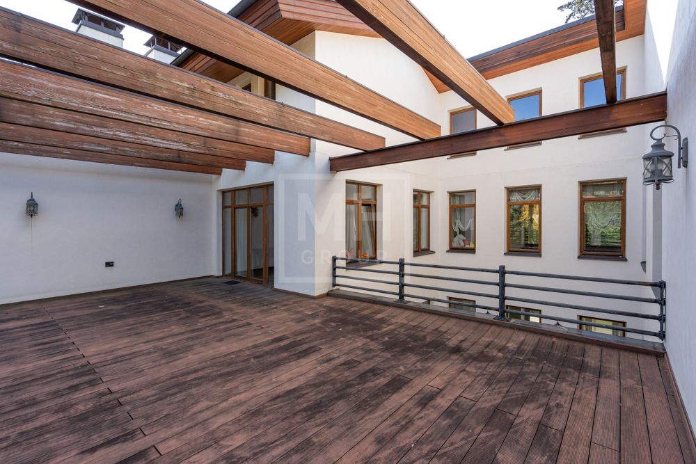 Предлагается великолепная под ключ с мебелью трехуровневая загородная резиденция, построенная на огромном живописном лесном участке с дорогим ландшафтным дизайном, в охраняемом коттеджном поселке "Мозжинка".Усадьба состоит из трех строений: основной дом, соединенный подземным проходом со служебным флигелем, в котором расположен гараж на шесть машин, также при въезде на территорию есть дом для охраны.
