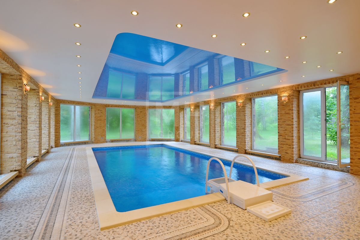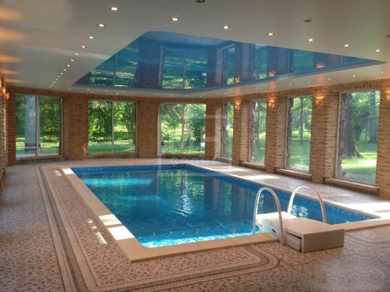 Этаж 1: Холл, гостиная с камином, кухня - столовая, зимний сад с имитацией звездного неба, Кабинет, спальня, бассейн 8х4 с витражными окнами, с/у, душевая, закрытая зона барбекю