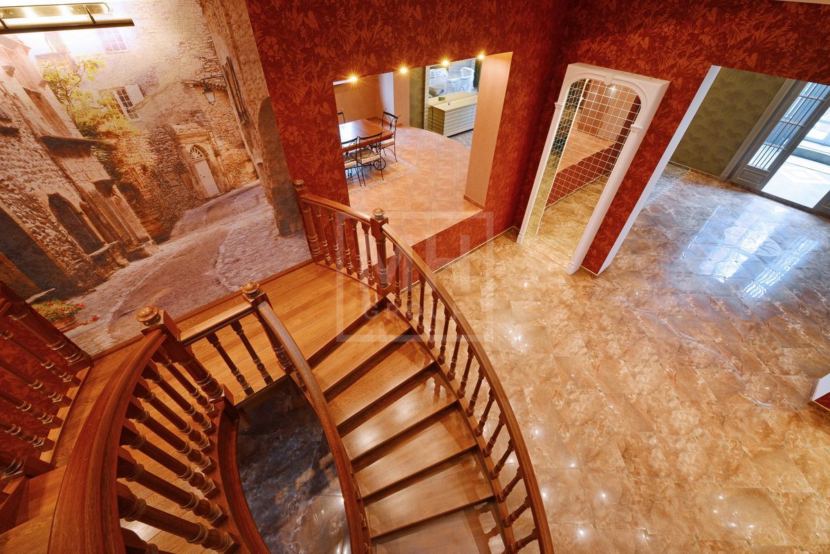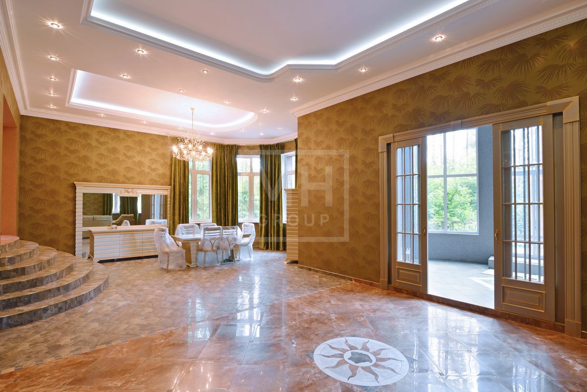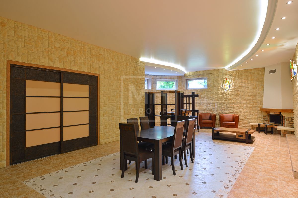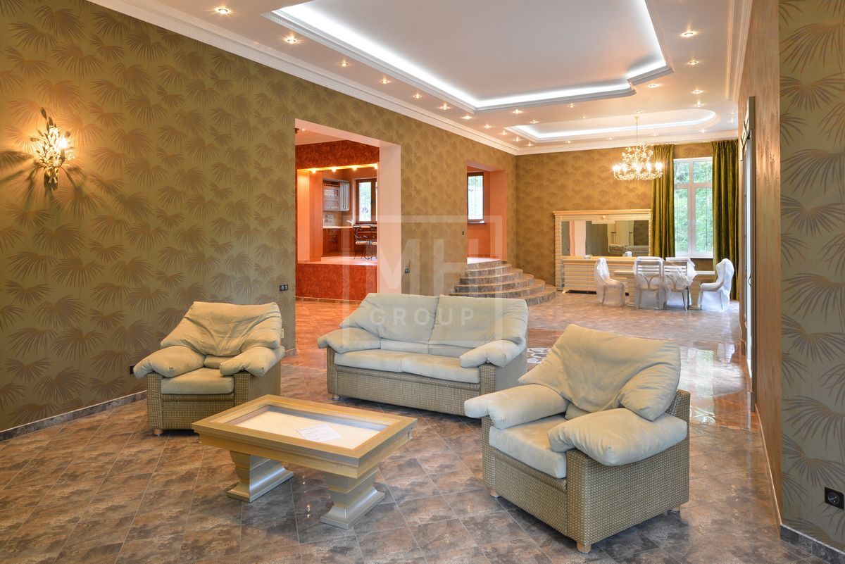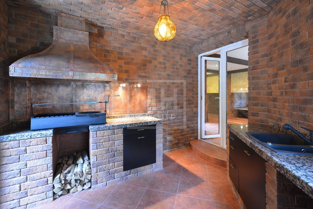 Цоколь: Каминный зал, домашний кинотеатр, летняя столовая с зоной BBQ и выходом на террасу, тренажерный зал, СПА зона: бассейн 8*4м с противотоком, сауна, 2 душевые, с/у; винный погреб, котельная, постирочная
