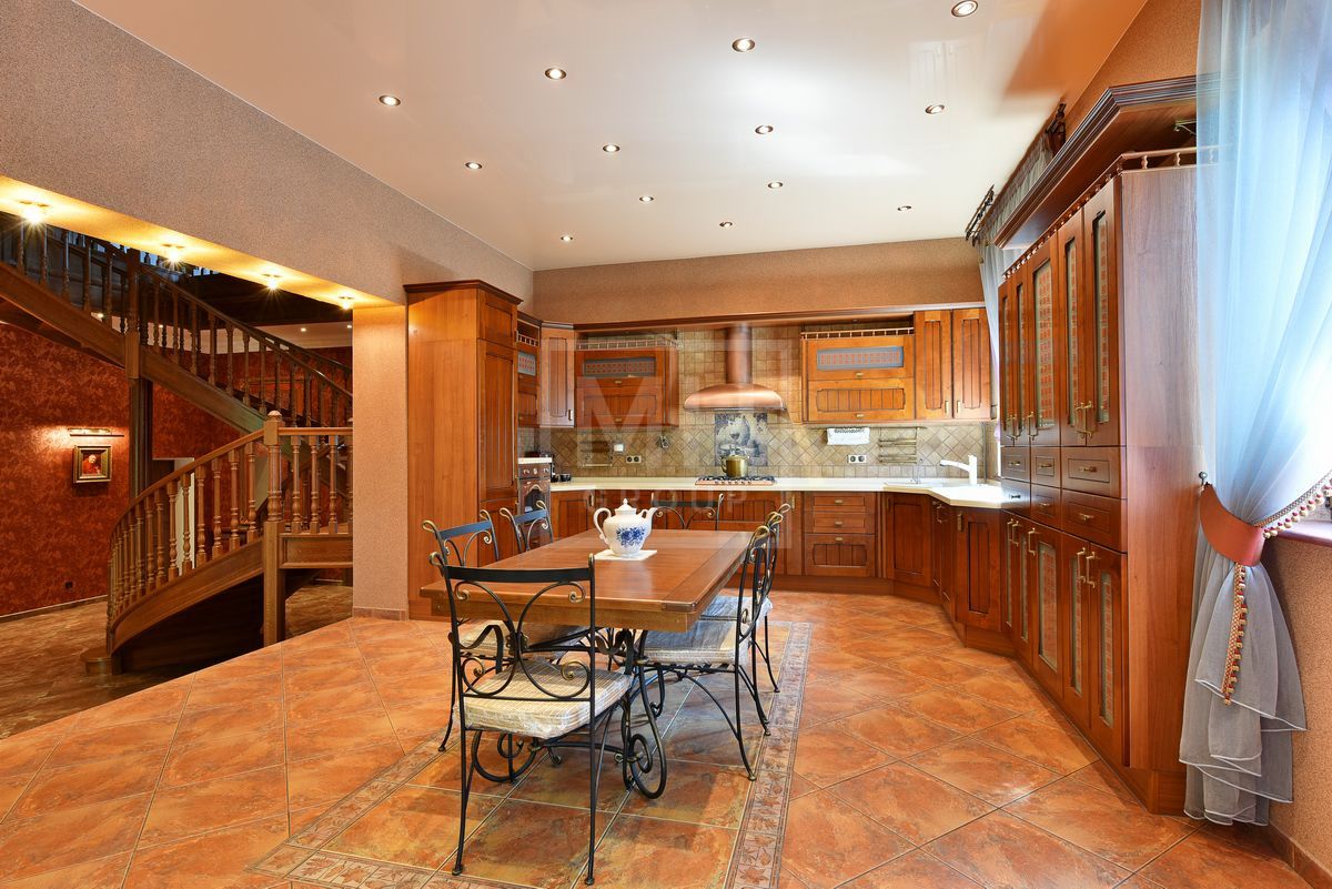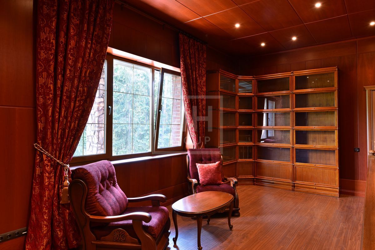 Великолепный дом под ключ с мебелью в готическом стиле. Удобно спланирован и рассчитан на большую семью. Окружен участком с вековыми хвойными деревьями.