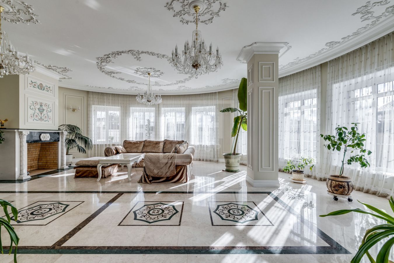 Потолок: роспись, натуральный гипс. Подоконники мраморные. Окна двойные стеклопакеты.