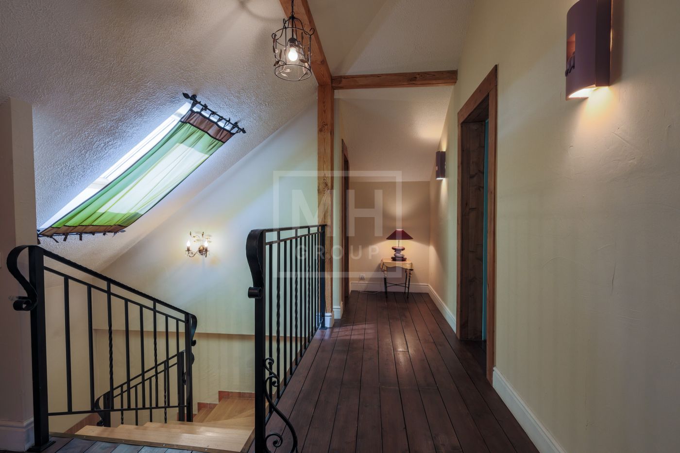 Уникальная архитектура дома, дизайнерское оформление помещений с использованием качественных материалов. Парадная столовая с канделябрами. Кованые перила на лестнице, ступени которой украшены изысканными узорами. Винтажные двери. Винный погреб с дегустационным залом. Этот дом полон экспрессии и изысканного шарма. Гараж в периметре дома на 1 автомобиль, площадка перед гаражом на 2 автомобиля, также можно разместить ещё два автомобиля перед воротами на участок, дом расположен в тупике. Респектабельное окружение, удобная локация.