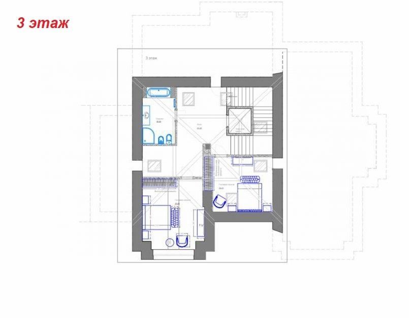 Этаж 3: две спальни с одним с/у и ванной комнатой, две детские игровые, тех.помещение