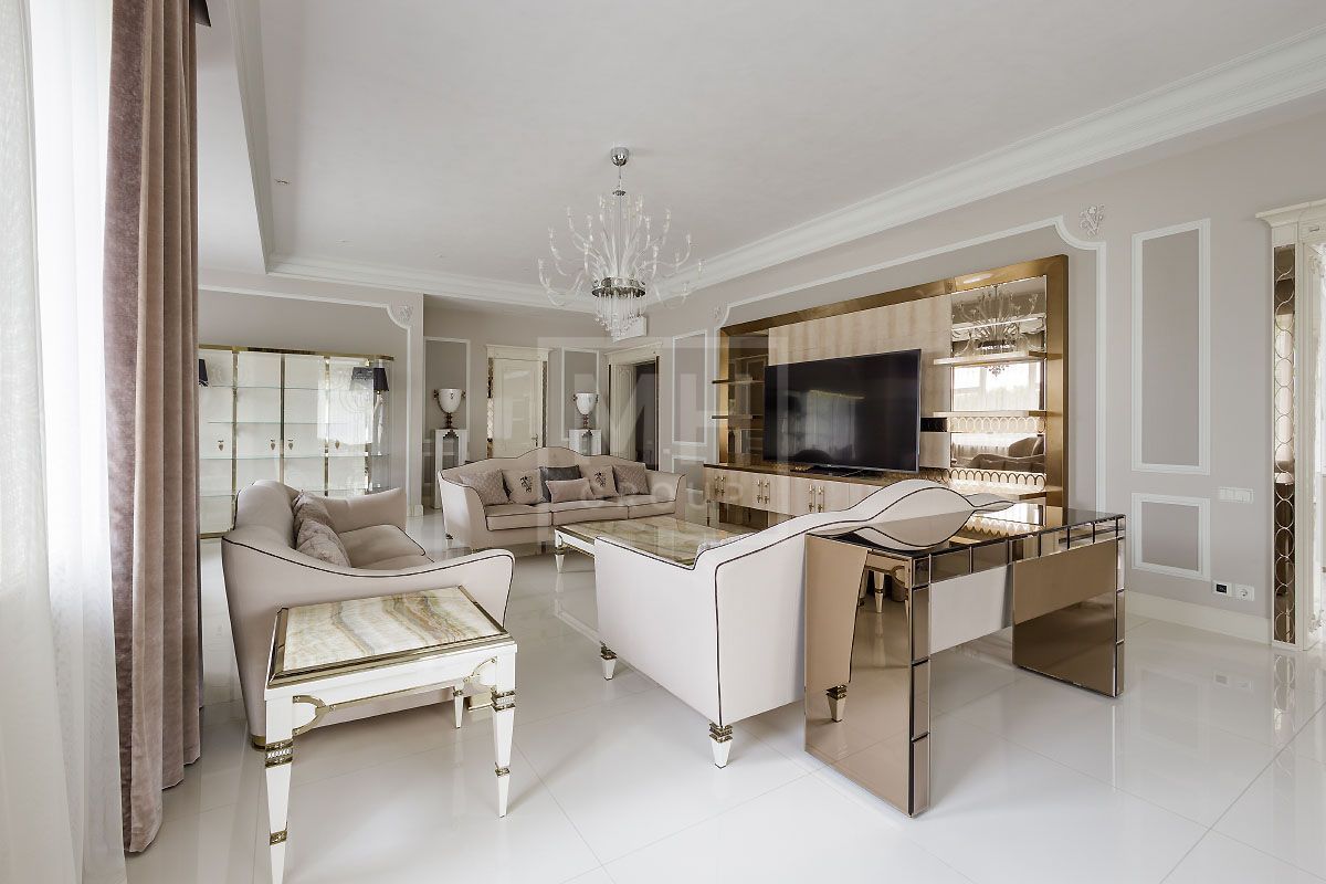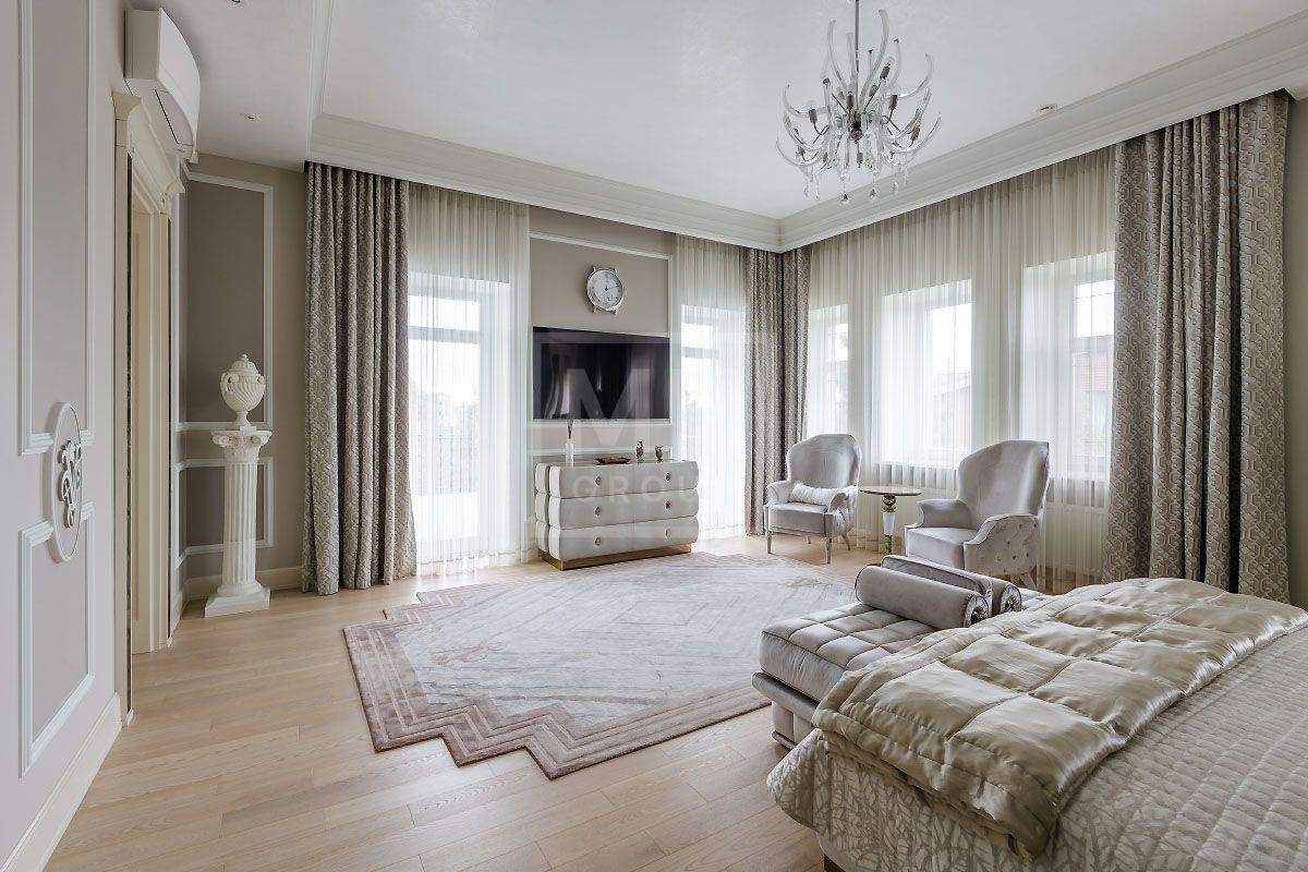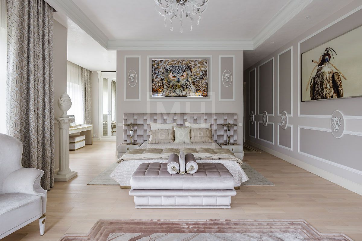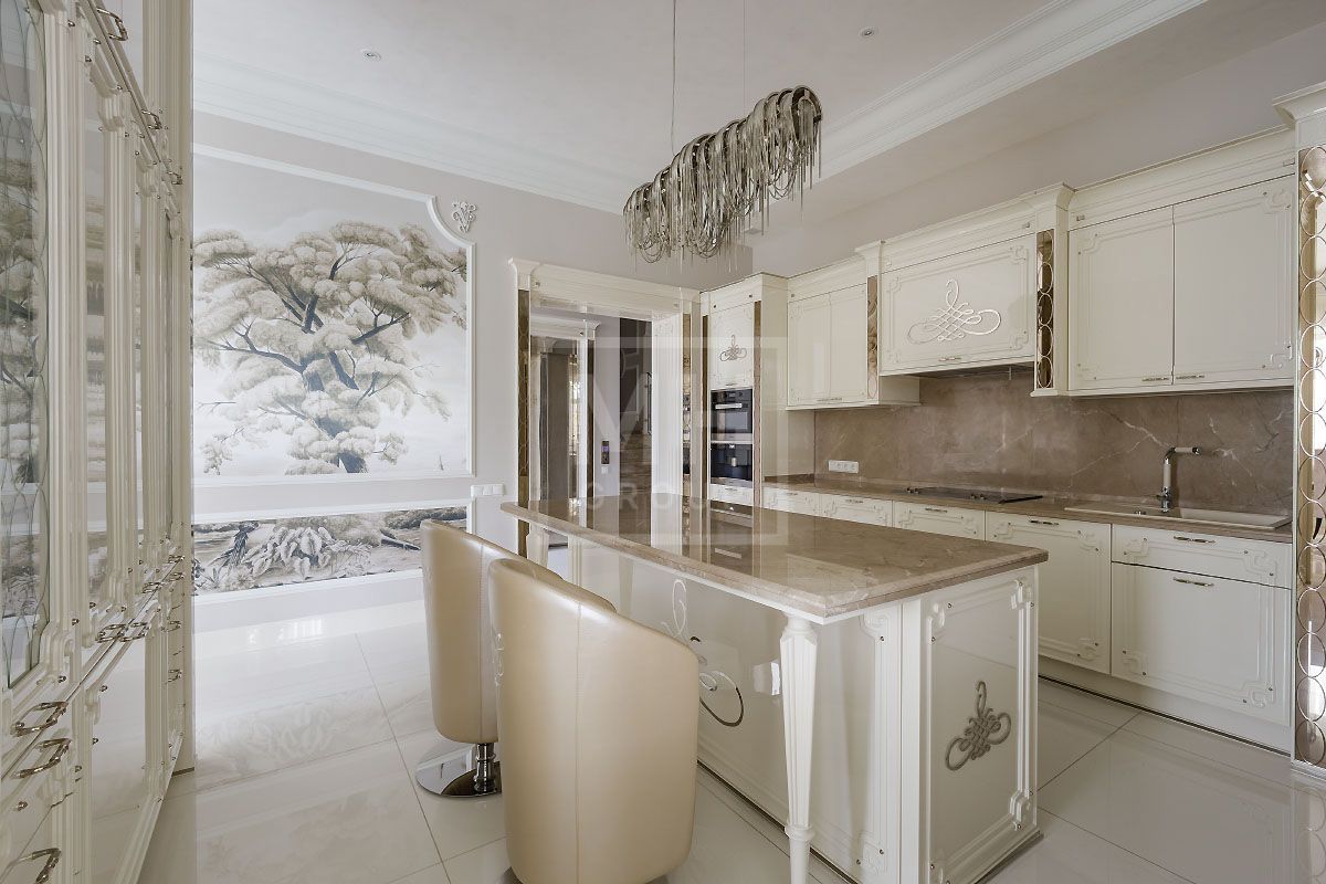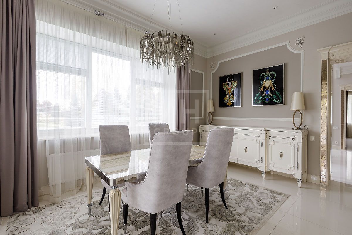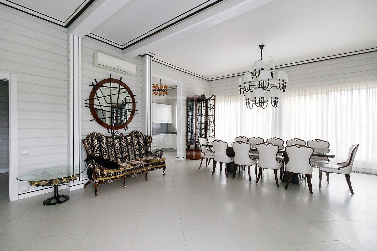 Эксклюзивный загородный дом в современном классическом стиле с просторными комнатами, высокими потолками, лифтом и встроенным гаражом на два автомобиля, полностью готов к проживанию и расположен .....Стены украшает изящная лепнина и фрески, в отделке потолков и стен использована венецианская штукатурка, полы покрывает итальянский мрамор, в отделке дома использован оникс. Дом полностью меблирован и наполнен изысканными предметами интерьера от Visionnaire (Италия), Swarovski и др.